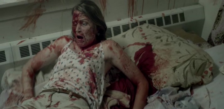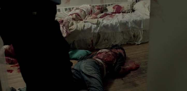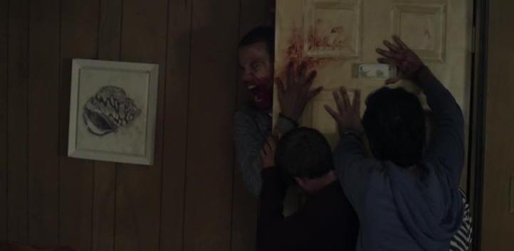 Il faut en réalité attendre donc quelques révélations pour relier les deux premières intrigues pour que le métrage passe à la vitesse supérieure et redevienne efficace, et surtout gore comme au début. C’est un peu longuet, mais les plus patients seront donc récompensés, surtout que lorsque l’on a bouffé du cinéma de genre, cette partie clichée, aussi prévisible que, avouons le, pas vraiment passionnante, n’est pas pire qu’ailleurs. Mais après, les personnages se font contaminer les uns après les autres, et deviennent comme enragés, façon 28 Jours plus Tard, attaquant tout le monde pour les dévorer. À la différence qu’ils peuvent également s’attaquer entre eux (ce qui rappelle le film Insanitarium). Un bisou ou une morsure, bref, la salive peut contaminer les autres personnages, et il va falloir survivre. Le film gagne en rythme, en sauvagerie, et retrouve même totalement son intérêt, décuplé lors de son final par des révélations qui apparemment, divisent assez les spectateurs. Je ne révélerais donc rien ici, mais le final, bien que sur certains aspects assez prévisible (il faut bien relier le tout, c’est le but même d’un scénario), touche un point actuel plutôt bien vu. The Evil in Us donc, ça commence fort, ça finit très bien, mais malheureusement, ça se fait beaucoup trop classique et cliché mi-parcours, rendant le film sympathique, tout à fait recommandable pour l’amateur du genre, mais ça aurait pu être tellement mieux par beaucoup d’aspects.