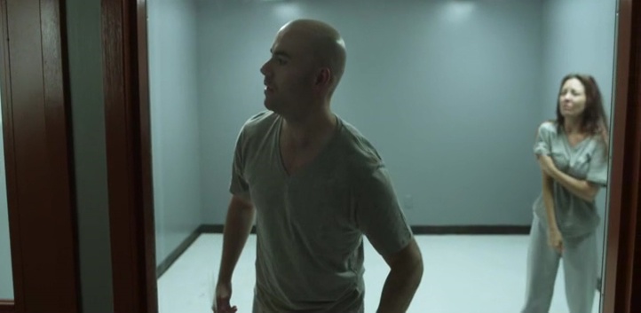 Malédiction. Une cabane dans les bois, sans réseau, sur une île perdue, avec aucun moyen de s’enfuir, une seule radio pour communiquer avec le monde, et bien entendu, 6 jeunes adultes clichés sur patte. Oui, on aura le nouveau couple, le gars rigolo qui s’entend avec tout le monde, la fille qui est amoureuse de l’un d’eux depuis des années. Quelle originalité hein ! Une seconde intrigue très classique qui n’ajoute rien de neuf et met pas mal de temps à démarrer, puisqu’il faudra attendre facile 45 minutes avant que les choses ne se bougent de nouveau. Et la troisième intrigue ? Ce sera la moins présente, et nous montre plusieurs personnes enfermées dans un laboratoire, et doucement, leur comportement va se détériorer, les faire devenir violent. Une intrigue qui ne se lie avec le reste que dans les derniers instants du métrage. Donc oui, pendant bien 40 minutes, le film perd de son intérêt et ne devient que le film de genre générique que l’on connaît un peu trop bien. Seule différence avec certaines autres productions, il faut l’avouer, ce n’est pas trop mal filmé, et malgré tous les clichés et personnages peu intéressants, pas trop mal joué. Le studio devait y croire un minimum et le budget se ressent à l’écran. Dommage donc que ce ne soit que pour une intrigue et un développement si banals.