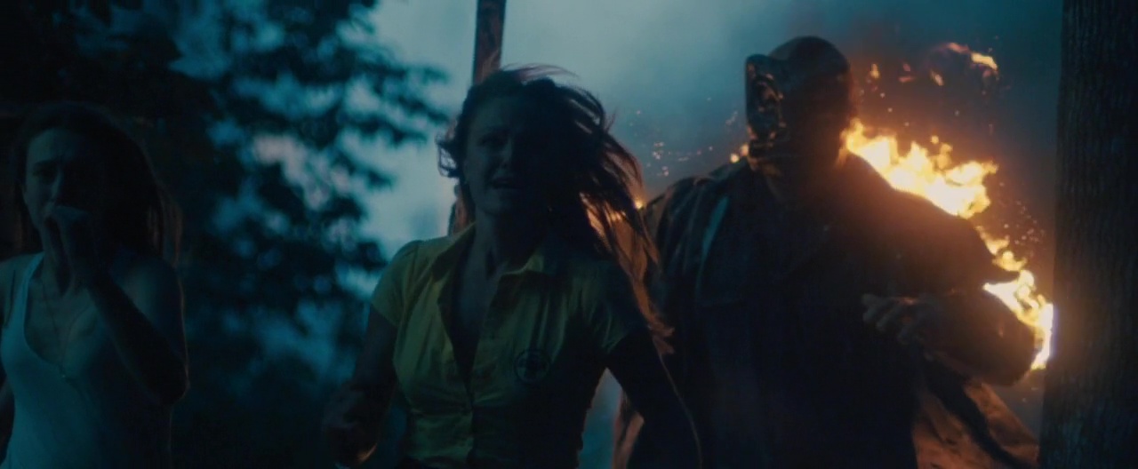 Violent certes, mais jamais saignant. Limite tout public. Mais qu’importe, le spectacle proposé fonctionne, surtout qu’entre son hommage, son côté parodique, mais également ses dialogues parfois assez affuté (You just messed with the wrong Virgin !) et ses idées de mise en scène sympathiques (l’idée du flashback), le métrage n’oublie pas de nous proposer la relation plutôt touchante entre Max, qui retrouve donc sa mère, mais dans un rôle, dans le film, et n’ayant donc aucune idée de qui elle est. Bien entendu, on pense à Last Action Hero qui utilisait le même procédé entre un fan et son idole pour le cinéma d’action, mais ici, avec le lien de parenté entre les deux, The Final Girls tente une direction plus touchante, et ça fonctionne, Taissa Farmiga et Malin Akerman aillant l’air d’y croire et restant crédible, autant dans les larmes que le rire. Oui, The Final Girls m’a emballé, même si j’aurais aimé un film plus sanglant, et que quelques CGI ne sont pas parfaits.. Mais l’hommage est là, la patte visuelle et sonore parfaite (le son à la Vendredi 13 à l’approche du tueur), et on rigole bien en se rappelant tous ces films que l’on a voyait en VHS ou avec les jeudis de l’angoisse.