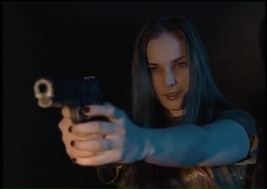 On est loin des tentatives d’humour grasses et faciles (et parfois amusantes) d’un Lord of the G-Strings, mais c’est bel et bien présent, comme lorsque notre agent secret ira dans un hôpital psychiatrique pour y rencontrer Hannibal Letcher (un tueur… végétarien). Jouée par… Misty Mundae, qui va donc se donner la réplique à elle-même. Elle semble d’ailleurs s’amuser, puisque dans ces scènes, autant dans le rôle de l’agent que de Letcher, elle se montre naturelle et convaincante, comme si plus intéressée par cette proposition de jouer enfin des rôles plutôt que de se dénuder. Rassurez vous, la dame se dénudera. Mais il est dommage, comme toujours, que les scènes érotiques s’étirent en longueur, voir constituent le plus gros élément du film passé la moitié de sa durée, délaissant alors l’aspect parodique pour n’être qu’un métrage érotique soft. Un peu à la manière de Spider-Babe quelques années avant, qui après une première demi-heure très sympathique, ne faisait qu’accumuler les scènes, sans doute par manque d’idées, ou de moyens, ou des deux. Du coup, The Spy Who Shagged Me abandonne mi-parcours, arrête de raconter une histoire, et arrêter d’essayer de nous amuser, pour se contenter d’essayer de nous exciter. Et ça ne fonctionne pas, surtout que le métrage laisse alors Misty Mundae (l’élément commercial du film hein, quand même) de côté pendant une bonne partie du métrage. Oui, pendant une bonne demi-heure (sur 1h15, tout de même), la jeune femme disparaît totalement du métrage, après sa rencontre avec Letcher, avant de revenir pour les 15 dernières minutes, armée de son pistolet (en plastique) et de ses lunettes noires, car on le sait, pour être un espion, il faut des lunettes noires.