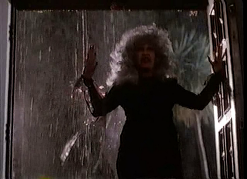 The Granny marque donc pas mal de points dans sa catégorie, sans pour autant être totalement convainquant. La faute en premier lieu à des morts qui ne manquent pas d’idées en plus d’être gores, tout du moins sur le papier. A l’écran si il y a bien des effets sanglants, le métrage ne permet pas d’en profiter pleinement, la faute à un montage qui part en vrille à certains moments, qui ne laisse que quelques bribes quasi subliminales. La mise en scène est quant à elle passe partout, pas déshonorante mais pas folichonne non plus. A noter que la photo est signée Wally Pfister, directeur de la photographie attitré de Christopher Nolan depuis ses débuts. Puis il y a ce ventre mou susmentionné. Des scènes inintéressantes et dispensables, en plus d’une conclusion qui laisse vraiment à désirer, que seuls quelques plans nichons empêchent de plonger dans un ennui profond. Enfin, vu la taille des bonnets, on parlera de plans obus. Du Siliconé à la forme so 90’s, mais aussi du naturel avec la poitrine généreuse de la superbe Shannon Whirry. Starlette des polars érotiques bas de gamme très à la mode à cette époque (que vous avez sûrement déjà aperçu sur M6 le dimanche en seconde partie de soirée), celle qui a débuté aux cotés de Steven Seagal dans Justice Sauvage hérite ici d’un rôle à contre emploi en incarnant une vieille fille qui va se transformer en héroïne bad ass. Un rôle qui lui a permis de changer de registre et qui lui a visiblement ouvert les portes vers des productions un peu plus prestigieuses où l’actrice a pu exprimer ses talents sans avoir à faire tomber le haut (voir son rôle de femme battue et abusée dans le Rétroaction de Louis Morneau). Le casting justement. Bien que la plupart des acteurs soient pour la plupart pas loin du surjeu, ce qui en ajoute un peu dans le coté comique, ils ne sont jamais irritants ou désagréables. Mais la palme revient à Stella Stevens dans le rôle titre. Actrice qui a eu une carrière bien remplie sans pour autant avoir atteint un statut de star, elle se lâche complètement dans son rôle de démon du troisième age. Encore un atout que The Granny a dans sa manche, ce qui en fait une série B convenable mais il ne faut pas en attendre plus, car bien qu’il se passe beaucoup de choses et que le film ne manque pas d’idées, il reste une série B. Ce qui n’est pas un mal en soi puisque le métrage ne prétend pas à autre chose mais certains choix, qu’ils soient d’ordre technique ou scénaristique, auraient pu être évités et donner un film bien plus transcendant. Reste que The Granny nous ramène à l’époque des vidéo-clubs et mérite un coup d’œil de la part des amateurs de B-movies. Et c’est déjà pas si mal.
