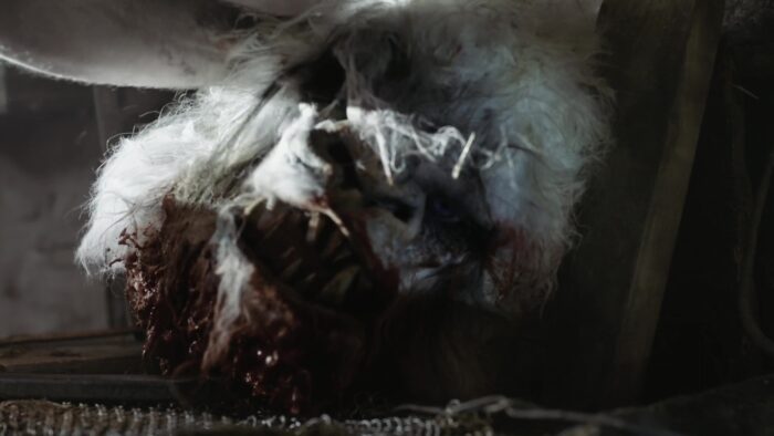 Une atmosphère poisseuse, une recherche dans la mythologie, voir parfois, une atmosphère typique de jeux vidéo (le personnage mutique vivant dans les bois dans un monde de fantaisie peut rappeler Skyrim, les créatures et certains lieux font penser à du Dark Souls, le métier de chasseur de monstre fait penser à du Witcher). Mais finalement, alors que The Head Hunter avait bien des qualités sans pour autant me convaincre à 100%, arriva la seconde partie de l’œuvre, celle qui en quelque sorte met le paquet, sans pour autant changer son fusil d’épaule. Celle de la traque de la créature tant recherchée, qui aurait pu s’arrêter en quelques secondes sans un artifice de scénario que l’on pouvait sentir venir plus tôt avec cette jarre et son élixir guérisseur. Voilà notre chasseur alors traquant une créature, une tête seulement, à la recherche d’un nouveau corps. Et cette traque est réussie, voir bien tendue. La nuit est ténébreuse, la caméra colle au personnage même dans les lieux les plus exigus pour nous faire ressentir cette sensation de traque impuissante. Le passage dans le petit tunnel est un modèle de genre pour les mini productions, et ce même si la rapide scène d’action qui suit s’avère brouillonne, voir ratée. Et puis il y a son final, bienvenu car inattendu, qui achève les 1h12 du métrage de bien belle manière. The Head Hunter, malgré ses défauts, à su me convaincre. Nul doute que le métrage va diviser, par sa nature même, par sa lenteur, son côté minimaliste, à l’écran et dans son propos (l’irruption d’un autre personnage pour remettre en doute le héros aurait été bien vu, bien que classique). Certains seront séduits, tandis que d’autres s’endormirons devant.