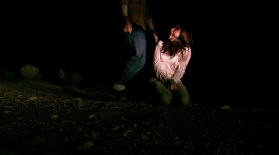 Sans être désagréable pour autant, on se rend vite compte que le film ne volera pas haut, ne fera pas dans l’originalité, et que c’est fauché comme les blés. Les mises à mort sont expéditives et souvent un peu mal fichues, la photographie n’est pas super jolie. Pourtant à quelques instants, le réalisateur parvient à poser une petite ambiance sympathique. Diantre, quelle est donc que cette fourberie ? Un rapide coup d’œil à sa filmographie, et on se dit que c’est un accident involontaire, puisque le jeune Leigh Scott a signé une multitude d’œuvres pour The Asylum, dont, attention les yeux : Frankenstein Reborn, King of the Lost World, Dracula’s Curse, Dragon, Transmorphers, Flu Bird Horror, ou encore Piranha Sharks… Oui, les quelques moments d’ambiance réussis de The Hitchhiker doivent être des accidents, obligé ! Bref, à partir de là, ça se bouge, et notre auto stoppeur, Jack de son petit nom, décide de faire du mal aux quatre jeunes femmes du casting. Ça implique donc, les insulter, les torturer, les ligoter, les violer aussi. Et parfois les tuer, mais doucement, car le casting n’est pas bien grand et il faut tenir sur la durée. Les dialogues sont toujours d’une vulgarité à toute épreuve, comme le démontre facilement un « si tu aimes tant ton mari, pourquoi m’as tu sucé hier soir et que j’ai mis ma bite dans ton cul ? ». De la pure poésie je vous jure ! En tout cas, Jeff Denton, jouant Jack, ne s’en sort pas trop mal.