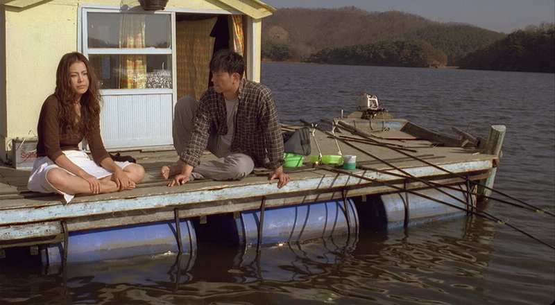 THE ISLE est un film unique – même si certaines de ses thématiques trouveront un écho mystérieux dans le joli THE BOW, en 2005 (pour plaisanter on pourrait presque y voir une préquelle). Kim Ki-Duk y met donc en scène deux personnages écorchés vifs : que ce soit l’homme en cavale, ou cette mystérieuse femme solitaire et muette, tous deux semblent avoir été durement marqués par le passé. Aussi ils vont bientôt ressentir une attirance certaine l’un pour l’autre, entre déracinés de la société, et une relation passionnelle et ambiguë va naître sur la lisse surface de l’eau.