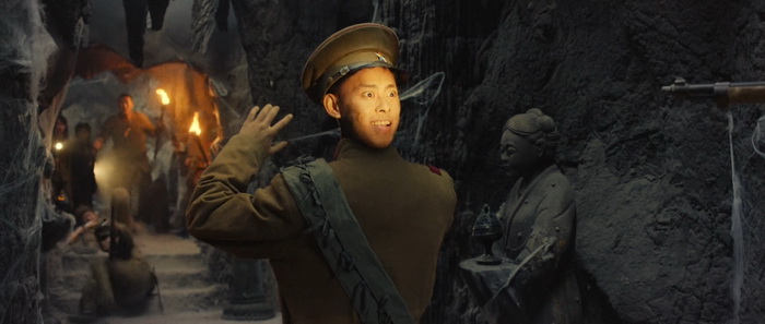 La première partie de The Kiddie Tomb nous met en confiance. Le scénario est posé en moins de trois minutes top chrono. Les personnages principaux sont suffisamment caractérisés qu’on sache rapidement qui est qui. On comprend qu’à cause d’un manque de ressources pour nourrir les habitants de leur village, des descendants de la faction Xiling n’ont d’autre choix que de piller des tombeaux ancestraux à la recherche d’objets de valeurs, quitte à offenser les esprits et autres démons qui protègent ces lieux. En 5 minutes top chrono, ils sont déjà dans la crypte et, forcément, ils vont être confrontés au danger. Seuls trois d’entre eux en sortent vivants, pas tous en très bon état. Mais par la force des choses, et surtout à cause de militaires peu scrupuleux, ils vont devoir y retourner malgré le danger. Araignées géantes, corps qui reviennent à la vie, fantômes d’enfants, fleur démon géante à grande langue, tel sera le bestiaire de The Kiddie Tomb qui, malgré son classicisme dans le genre, tente une approche parfois originale du pillage de tombeaux. Seulement voilà, beaucoup trop de questions et de scènes sont laissées en suspens, à commencer par le final. Pourquoi se passe-t-il tout ce qui se passe ? On ne sait pas trop, si ce n’est que c’est ainsi que se manifestent les protecteurs de ce lieu sacré. On a l’impression qu’il manque parfois des scènes, comme si tout n’avait pas pu être tourné ou simplement casé dans les 1h12 que dure le film. Ou alors, ils ont voulu commencer une saga et les films suivants vont apporter des éclaircissements ? The Kiddie Tomb fait partie de ce genre de productions chinoises qui a envie de proposer du spectaculaire mais qui n’a pas le budget ni le temps de tournage de ses ambitions. Et cela se voit entre autres avec les nombreux CGI pas toujours au point. Certes, on a vu pire, mais ce n’est pas ça malgré tout. C’est dommage car la première moitié, plutôt réussie, nous mettait en confiance, avec une première descente dans le tombeau qui fait son petit effet. Mais la deuxième partie ne sait pas réellement où aller.