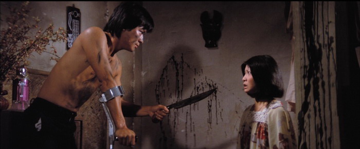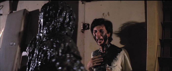 Le film s’ouvre sur les paroles suivantes : « Cette histoire est une réécriture d’un conte populaire de Nanyang. Elle véhicule la morale selon laquelle la justice finit toujours par triompher. ». Il s’agirait en fait d’une légende urbaine malaisienne appelée L’Orang Minyak, qu’on pourrait traduire par « Homme Huilé » qui a vu le jour au milieu du 20ème siècle dans un contexte de tensions sociales autour de la moralité et la sexualité. Dans les récits qui en parlent, on y retrouve souvent une créature vengeresse née dans le pétrole qui va faire bouffer du pissenlit par la racine à tous ceux qui lui ont causé du tort. Le cinéma malaisien s’emparer de cette légende dès les années 50, par exemple avec les films Sumpah Orang Minyak (1956), Orang Minyak (1958) et Serangan Orang Minyak (1958) qui ont remporté un joli succès. Deux décennies plus tard, c’est la prolifique Shaw Brothers qui va en faire une adaptation en y injectant ce qui fonctionne à l’époque. The Oily Maniac commence comme une tragédie romanesque on ne peut plus sérieuse, nous présentant un Ah Yung, incarné par Danny Lee (The Killer), infirme de son état, qui va être rejeté par la femme dont il est éperdument amoureux depuis de nombreuses années. Pris d’une rage furieuse et désespérément pathétique, il va mettre en pratique une technique de magie noire que lui a appris transmis son oncle dans le couloir de la mort, un rituel censé lui conférer une force surhumaine. Le voilà qu’il se transforme en The Oily Maniac, sorte de créature faite d’huile / pétrole / on ne sait pas trop quoi. C’est à partir de là que le film va tomber dans le cinéma d’exploitation pur jus, avec notre héros qui va se faire justice soi-même, pourchassant et tuant sous cette forme tous ceux qu’il estime néfaste à la société ou à lui-même, sorte de croisement entre le vigilante movie et The Toxic Avenger avant l’heure. Il est possible que Lloyd Kaufman se soit inspiré du film de Ho Meng-Hua pour sortir son chef d’œuvre du cinéma bis.