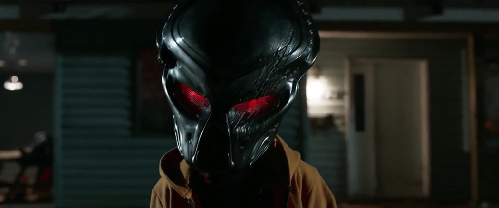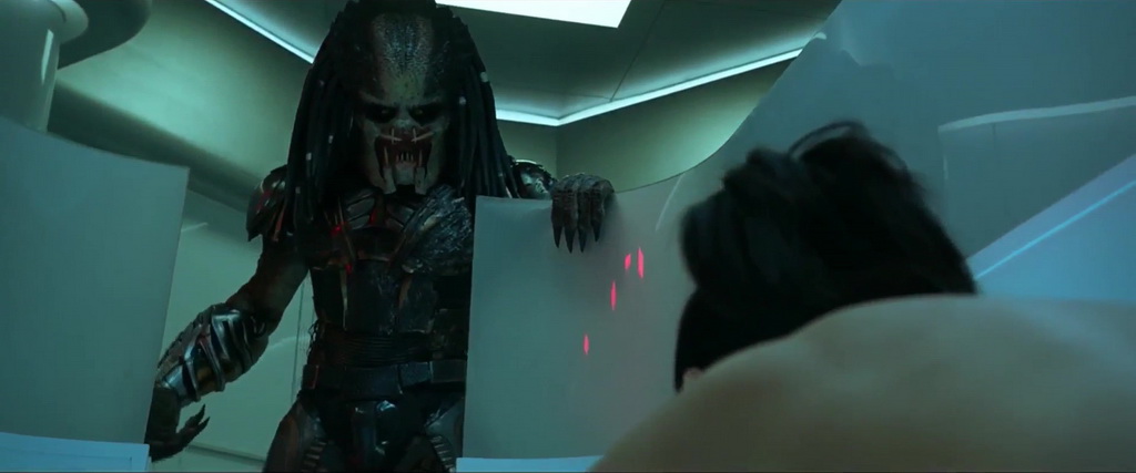 J’y suis donc allé à reculons, mais je l’ai vu. Et si je peux affirmer que le film n’est pas vraiment bon sur pas mal d’aspects, je ne peux nier par contre son capital divertissant, même dans ses mauvais points. The Predator, mauvais film et bon nanar ? Pas si sûr, puisque dans le fond, on retrouve par moments la formule Shane Black, avec son humour. Donc, de l’humour volontaire. Un film donc difficile à bien classer, difficile à aimer (encore plus pour le fan du premier film), mais divertissant. Il raconte quoi donc ce nouveau Predator ? Un vaisseau Predator se crash sur Terre. Il est récupéré par l’armée pour être étudié, tandis qu’un militaire l’ayant trouvé s’est envoyé à lui-même une partie de l’équipement du vaisseau, pour couvrir ses arrières si l’armée veut se débarrasser de lui. Sauf que le Predator s’échappe, veut son équipement, le fils du militaire récupère tout ça pour ne pas faciliter les choses, et que le Predator en question est un fugitif bientôt rejoint par un Predator chasseur de prime qui veut sa peau, et détruire toute trace de sa venue et de ce qu’il était venu faire ici. À la lecture du pitch, pourquoi pas. Ça nous promet deux Predator, de l’action, des morts, des militaires encore, un enfant (car Shane Black aime les enfants). Dans les faits, c’est un peu plus différent, Shane Black et son coscénariste Fred Dekker (qui lui doit rester scénariste, car sinon il a réalisé Robocop 3) ayant décidés de mélanger les genres. The Predator est donc à la fois un film d’horreur (peu convaincant), un film d’action (parfois efficace), une comédie (parfois bien stupide), en plus d’être une suite aux trois précédents opus. Tout un programme. Et sans mentir, malgré de gros défauts, comme des personnages clichés et peu intéressants, la première heure tient plutôt bien la route. Ça va vite, ça ne traîne jamais en longueur malgré la multitude de personnages à introduire (souvent pas très réussis). Et ironiquement, ça fonctionne tant qu’il n’y a qu’un seul Predator à l’écran.