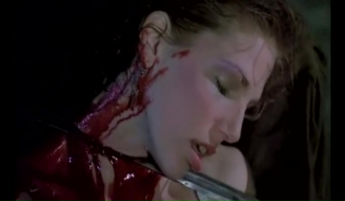 Mais parfois, c’est l’effet opposé et on se demande bien quand le réalisateur va se décider à passer à la scène suivante tant l’ennui est quasi là. Déstabilisant, autant dans le bon que dans le mauvais côté. Heureusement, cet aspect, on le retrouve jusque dans les meurtres. Là où beaucoup de films et de réalisateurs fournissaient des images chocs et furtives (soit par peur de la censure, soit après le passage de celle-ci justement), The Prowler fait crier la censure en faisant l’exact opposé. Si la victime doit souffrir de longues et longues secondes avant de livrer son dernier souffle, paniquée, les yeux convulsés, et bien que le spectateur n’y échappera pas. Les lames pénètrent la chair, les corps sont transpercés, les personnages souffrent, se raccrochent à la vie jusqu’à leur dernier souffle, et la caméra capte cet instant, sans retenue. Complaisant, barbare, sadique, osé ! Surtout que le tueur se lâche totalement et nous livre, grâce aux maquillages de Tom Savini, des scènes franchement d’anthologies, et très surprenantes. La scène de la douche par exemple, mais également celle de la piscine resteront dans les esprits. C’est par cet aspect original, où le réalisateur fait durer la tension et la torture, que The Prowler s’est fait sa petite réputation, même s’il reste toujours quasi inconnu en France. Pour les plus curieux, Blue Underground a sorti en Amérique un Blu-Ray contenant des sous titres français, et surtout la version non censurée du film.