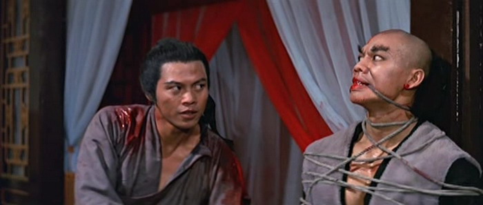 Ceux qui adorent le look des films de la Shaw Brothers ne seront pas déçu par le visuel enchanteur du film. Les décors sont une fois de plus superbes, avec un très joli jeu de lumières frôlant l’expressionnisme, et chaque plan pourrait être un tableau de maitre tant le souci du détail est présent. Le rouge est parfois la couleur dominante (les rideaux, certains costumes, …), jusque dans la quantité de sang couleur vermillon qui sera déversé, comme c’était typique de le faire dans les films de sabre de la Shaw de cette époque. En ce qui concerne l’action, elle est ici en quantité et de qualité. Aidé du talentueux Tang Chia, le clan Yuen fait à nouveau des merveilles avec, à l’instar de Heroes of Sung, des chorégraphies très aériennes et même si le wire-fu pourra parfois paraitre un peu cheap, c’est aussi ce qui fait le charme de ces productions du début des années 70. Shen Chiang et ses chorégraphes privilégient la visibilité à la nervosité du montage et c’est tant mieux, cela permet au spectateur d’apprécier le talent des artistes martiaux qui vont s’en donner à cœur joie avec toute une panoplie d’armes, de la plus classique, un sabre, à la plus exotique, une hache attachée au bout d’une chaine. Les combats vont s’enchainer et la mise en scène précise et dynamique de Shen Chiang va permettre au spectateur amateur d’arts martiaux d’apprécier le spectacle fun et réjouissant proposé par The Rescue. Certes, le film n’a pas la puissance d’un Chang Cheh ni la maitrise martiale d’un Liu Chia-Liang, mais pourtant The Rescue a un côté assez épique, où drame historique se mélange parfaitement à l’action souvent spectaculaire et innovante pour l’époque, avec une tension qui monte crescendo, par étapes, et un rythme parfaitement maitrisé. Certains diront qu’il faut déjà être acquis à la cause et ne pas être rebuté par le côté old school des productions Shaw Brothers, certes, mais il est quand même assez difficile de bouder son plaisir devant ces 1h19 qui filent à vive allure et qui se dévorent comme un divertissement popcorn qui derrière sa simplicité respire la passion. Oui, The Rescue est un film qui croit en ce qu’il raconte, qui croit que l’honneur n’est pas un mot vain, et ça ne le rend que plus touchant. Et ce ne sont pas les quelques imperfections d’une narration qui s’égare parfois qui vont venir gâcher le tableau. Non mais !