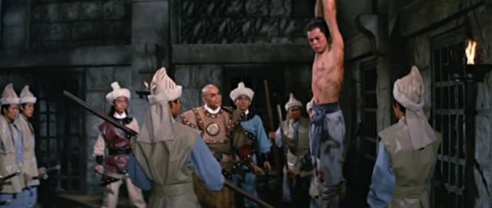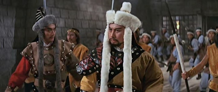 Lorsqu’on se lance dans the Rescue, on constate très vite que l’histoire sera assez classique et déjà vue dans de nombreux films de la Shaw Brothers. La structure du film est assez simple et habituelle avec un groupe de héros qui va se constituer, qui va devoir s’infiltrer, rencontrer plusieurs épreuves qui vont les mener jusqu’à l’affrontement final. Pour que l’ensemble soit moins linéaire, on va ajouter à cela une touche de trahisons et un soupçon de retournements de situations avec en ligne de mire la fidélité à son pays et l’honneur qui transcendent la peur de la mort. Sous ses airs de films d’aventures et d’action se cache clairement un élan patriotique avec ces gens qui se battent corps et âme pour leur la Chine et sa grandeur. Au centre du récit, on retrouve le personnage de Lo Lieh, figure incontournable du studio qu’on prend toujours plaisir à retrouver. Charismatique, arrivant parfaitement à retranscrire la rage contenue de son personnage, son jeu presque monolithique tranche avec le reste du casting, beaucoup plus théâtral, ce qui en fait clairement le centre d’attraction de chaque scène. A ses côtés, la jolie Shih Szu qui, comme dans Heroes of Sung, a une présence assez impressionnante à l’écran, aussi bien dans les scènes d’exposition que dans les moments d’action. On retiendra également le tout jeune Bolo Yeung qui par con charisme arrive à contrebalancer son jeu parfois encore hasardeux. Bien que les dialogues qu’on leur a donnés soient parfois trop schématiques ou expéditifs, ils incarnent leurs personnages avec une bien belle tenu dans une intrigue intense mais inégale. Compact (1h19 génériques compris), énergique et rythmé, le scénario s’éparpille un peu trop dans sa deuxième moitié avec des vrais faux rebondissements, des trahisons qu’on voit venir et de trop grandes facilités. Cette dispersion affaiblit un peu la montée en tension qui mène au climax mais au final, cela importe peu car le côté pulp complètement assumé du film emporte l’adhésion et fait oublier les quelques défauts de ce scénario qui va un peu trop jusqu’à l’excès pour le plaisir immédiat su spectateur tout en croyant vraiment à ce qu’il raconte.