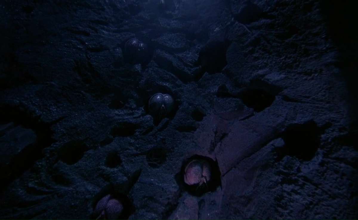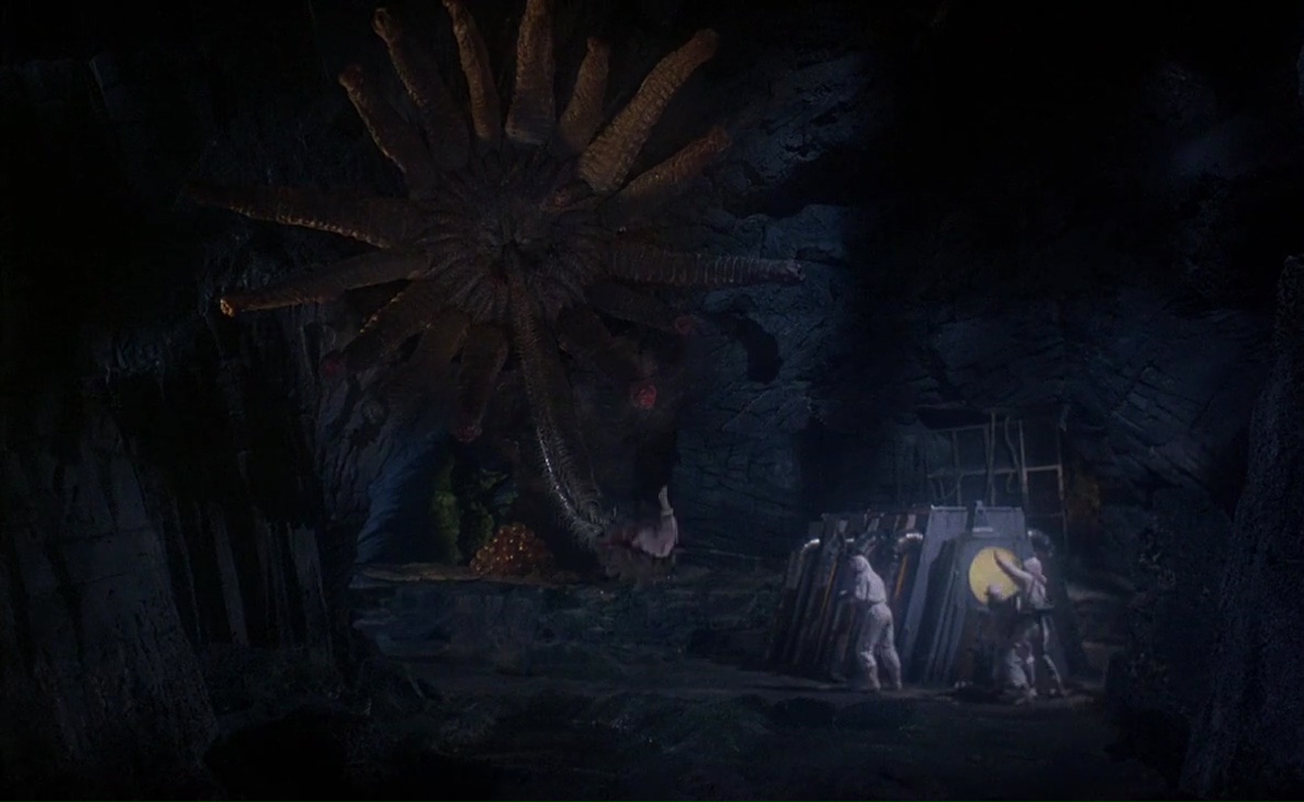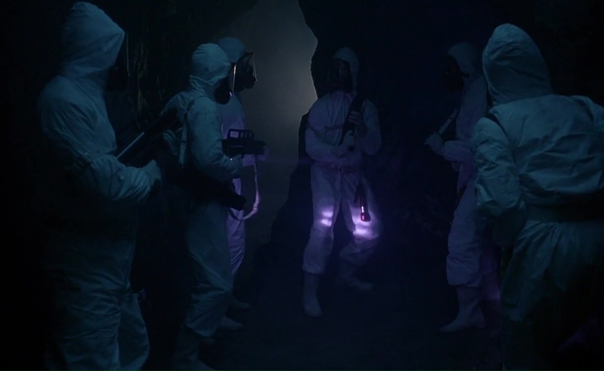 Mais c’est dés lors que notre fameuse équipe arrive dans la grotte que le film démarre, se fait généreux, bien plus intéressant, et qu’il nous lâche au départ une petite ambiance sympathique et mystérieuse avant de nous balancer à la gueule pas mal d’effets spéciaux et d’effets gores, tout à fait corrects pour le budget. Généreux, the Rift l’est, et ça ne s’arrête plus une fois le festival lancé. Démembrements, créatures multiples et variées au design bien sympathiques, corps explosés, tentacules (non ce n’est pas du hentai je vous le jure !). Les effets tout comme le rythme s’emballent, pour ne plus nous lâcher jusqu’au final, malgré des événements plutôt prévisibles, et le bodycount, autant côté humains que côté monstres est assez impressionnant. Du coup, produit bien représentatif de son époque qui ne cherche aucunement à surprendre ou à renouveler le genre, The Rift sait se faire divertissant et plutôt agréable, malgré son côté fauché. Car même en dehors du sous-marin, il faut bien avouer que les personnages ne vont qu’évoluer dans des couloirs sombres d’une grotte qui se ressemblent tous. Mais le film s’avère malgré tout attachant, même dans ses défauts. Il n’arrive pas à la cheville de Leviathan, ou même de MAL qui a tout mon capital sympathie, mais il se tient là.