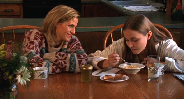 Certains dialogues et situations par contre pourront faire rire en voyant ce film débarquer en 2004, après donc la vague de parodies qui aura mit en avant Misty Mundae. Car l’image qui fait vendre, c’est cette jeune femme au physique innocent, avec ses petits seins, son côté fille d’à côté. Cela fait parti de sa popularité. Donc forcément, voir Misty dans ce film se plaindre de la taille de sa poitrine, ça a de quoi faire rire. Mais oui, le film a été tourné avant donc hein ! Nous suivons donc Misty (l’actrice et le personnage, elles ont le même nom) qui va passer une semaine de vacances chez sa tante. Et je l’ai déjà dit, les films sont ce qu’ils sont, mais Misty Mundae sait jouer, elle est même bonne actrice. Si bien que la voir débarquer, habillée de manière réservée, jouant de manière toute timide, et ben ça fonctionne, et surtout, c’est le personnage, ce n’était pas encore un élément vendeur. Elle débarque donc chez sa tante, et on s’en doute, la jeune femme va découvrir la sexualité. Et voir Misty passer de la fille toute timide qui ne se pose pas de questions à une femme qui veut devenir épanouie, ma foi, ça fonctionne bien. Déjà parce qu’elle joue bien, ensuite parce que le film semble avoir été tourné en 16mm et avoir bénéficié d’un grand sérieux dans sa mise en image (malgré l’abus de fondu au noir entre les scènes) et n’affiche donc pas une image dégueulasse en DV. Quelques belles idées visuelles se greffent au film, les décors extérieurs de campagne sont très jolis, quelques plans bien trouvés. Oui, le film a été réalisé avec sérieux. Mais bon, si vous me lisez, vous voulez sans doute plutôt savoir… enfin, que je vous parle des scènes érotiques !