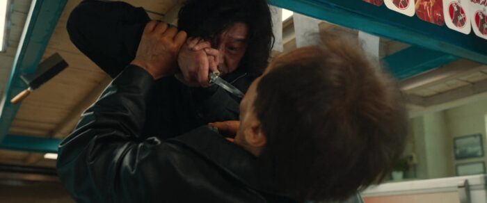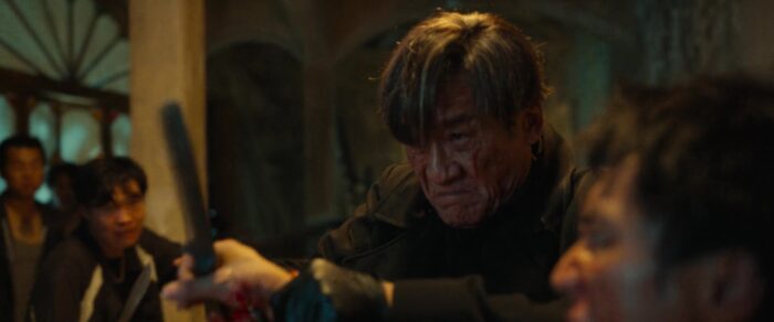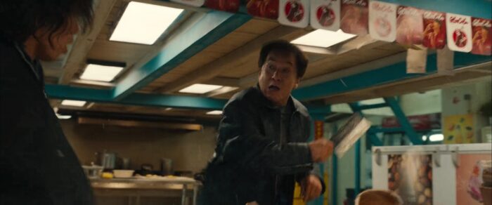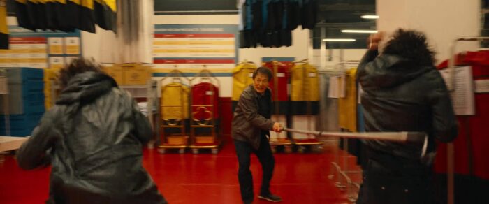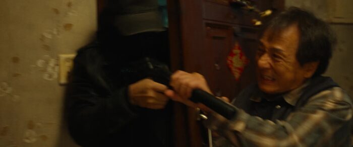 Mais bien entendu, ce n’est pas pour ça que The Shadow’s Edge tire son épingle du jeu. On le doit à sa générosité, à son action, à son rythme même si quelques coupes n’auraient pas fait de mal, et à son humour, qui fonctionne car il est assez rare. Jackie doit donc former des petits jeunes pour faire de la surveillance et retrouver un groupe criminel, à une époque où la technologie devient envahissante et remplace le travail de terrain. Un choix technologique qui au final trouve vite ses limites, les criminels pouvant pirater les systèmes, fausser les données, les vidéos, couper les communications. Bref, Jackie, bien que retraité, vient filer un grand coup de main, et le film ne fait pas les mêmes erreurs que récemment. Il doit bien former une équipe plus jeune, mais il reste cependant l’acteur principal, et celui au premier plan jusqu’à la fin. Par contre oui, l’acteur accepte qu’il a maintenant 70 ans passé, et ne peut plus faire la même chose qu’avant. L’action est plus rare (et donc dans un sens plus impactante), et il ne sauve pas le monde tout seul, Quiguo étant un atout indispensable à l’intrigue. Face à eux, Tony Leung Ka-Fai est souvent impérial en bad guy sans pitié. Je serais plus modéré quand au reste de son équipe, qui semble parfois sortir d’un boys band à la mode niveau look. Et l’action donc ? Elle fonctionne, malgré un découpage plus fréquent qu’avant au montage, sans doute pour camoufler l’âge des acteurs évidemment, mais néanmoins, le tout reste lisible, parfois violent, et donc forcément assez jouissif à voir. Que ce soit l’affrontement final, assez long et violent, ou tout simplement le premier vrai combat dans un petit appartement où tout le mobilier y passe, cela fait plaisir de revoir de l’action de bonne facture chez Jackie Chan, réaliste et terre-à-terre, et surtout sérieuse. Si l’on ajoute à ça de nombreuses scènes de filature où chaque équipe tente de prendre le dessus sur l’autre en usant de trucs et astuces (et de technologie), et on a là un polar mâtiné d’action plus qu’efficace, et surtout plutôt inespéré à ce stade-là. Un vrai bon moment, imparfait mais sincère et prenant.
