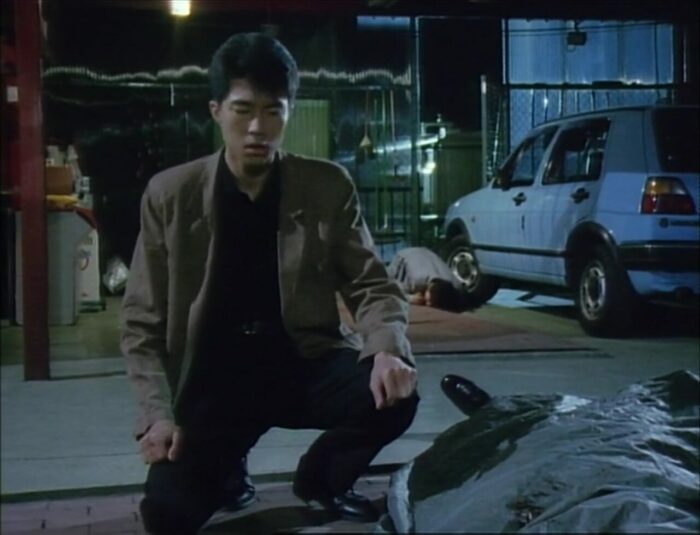 Car si je vous dis un ancien flic, reconverti en tueur, travaillant pour un ancien collègue qui tient maintenant un garage, exécute quelques contrats, va craquer pour une femme qu’il va finalement choisir de laisser partir quand ses propres employeurs vont le traquer après un contrat qui tourne mal, ça ne vous rappelle rien ? Mais si, changez la donnée « ancien flic » et « tueur » par « ancien cascadeur » et « conducteur », et vous avez là exactement le scénario du film Drive de 2011. Les similitudes sont il est vrai assez énormes. Alors, inspiration non avouée du scénariste de Drive ? Allez savoir. Mais The Shootist, à part évidemment dans les détails, dans la vie de son personnage, est le même film que Drive, avec ce contrat d’ouverture tout en silence qui prend son temps, l’ami qui tient un garage et lui donne des contrats, et qui va finir par en payer le prix fort, le héros qui va craquer pour une femme sérieuse, un peu paumée dans sa vie amoureuse mais qu’il va finalement choisir de laisser partir, et ce jusqu’au final. Alors oui, il y a de grosses différences entre être un conducteur magistral dans Drive et être un tireur hors pair dans The Shootist, mais voilà. Heureusement, le film est finalement propre, fait avec le plus grand sérieux, rythmé malgré son manque d’action (car oui, comme dans Drive, au final, les scènes d’action sont très rares), et le casting est hautement charismatique pour nous donner envie de les suivre. Et oui, The Shootist sait aussi quand il doit se faire grave, violent. Bref, du V-Cinema simple, mais bien rodé, facile à regarder, très facile à apprécier pour le fan. Sur certains aspects, si l’on devait continuer de comparer, on pourrait même dire que The Shootist est meilleur que Drive, notamment lorsque notre héros, Matsushita, est traqué. Moins marquant, mais avec plus de suspense. Pas de tête fracassée, mais une longue poursuite, en voiture, puis à pied, une tension alors que le héros se sait observé mais doit malgré tout décider de sortir de sa tanière.