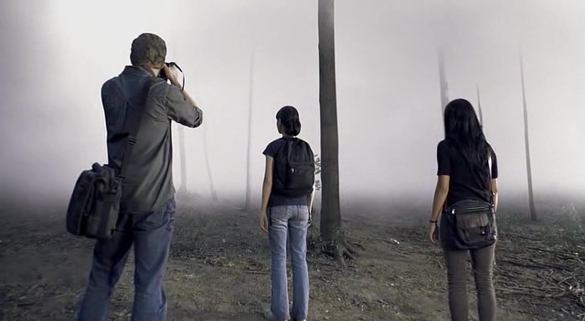 Statique même s’il y a du vent, très épaisse, cette brume étrange (et numérique, il ne faut pas se leurrer, mais ça fonctionne) a de quoi attirer. Surtout quand les personnages s’y aventurent, et y trouvent une étrange statue. Ancienne divinité, culte satanique ou autre ? La réponse viendra bien plus tard, mais ce qui est sûr, c’est que les habitants du coin ne supportent pas de voir ces étrangers fouiller dans leurs affaires. La première partie, malgré quelques interrogations, s’avère plutôt classique, et on pourra dire que l’on navigue quelque peu dans le survival, le tout allié à quelques cultes qui ne sont pas sans rappeler Le Masque du Démon du grand Mario Bava. L’hommage est d’ailleurs fort sympathique à l’écran, et nous donne quelques scènes plutôt tendue, même si on ne comprend pas encore exactement tous les enjeux du métrage. Mais ce que The Shrine propose jusqu’à présent, il le fait bien. À noter également que les habitants du village, notamment les membres d’une sorte de culte, font beaucoup penser au jeu Resident Evil 4…