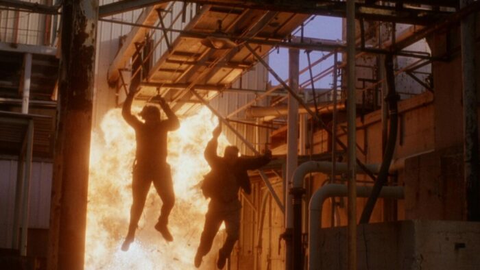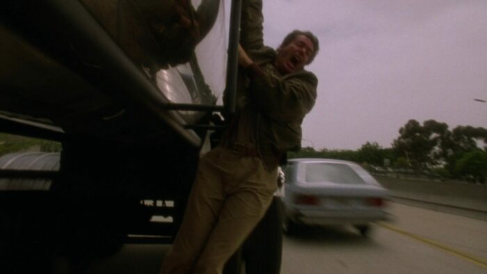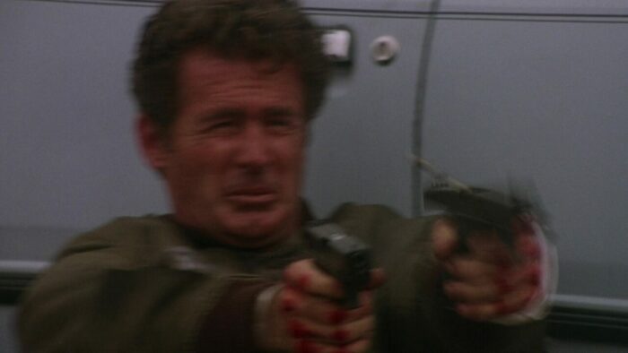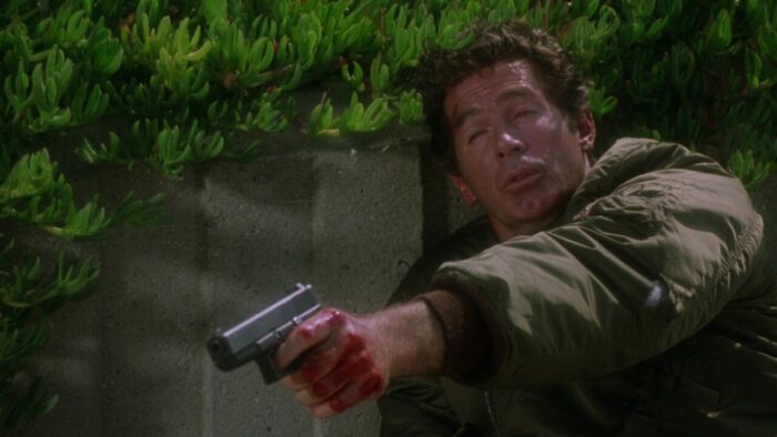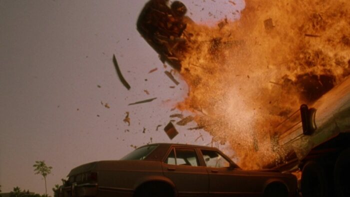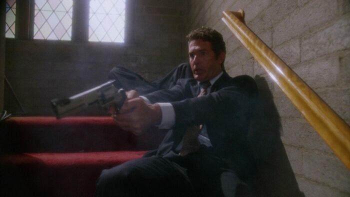 Entre deux explosions, on ne s’ennuie donc (quasiment) jamais devant The Silencers qui propose également, il est temps d’y venir, de l’action à gogo. Et là difficile de venir y redire quoi que ce soit tant on est dans du PM pur jus. Ça explose, ça flingue et ça tatane à tout va pendant 1h40 dans de longues poursuites à l’image de la première qui commence avec un gunfight dans une église pour se terminer par un pompage de la scène du métro de Die Hard 3 avec de piètres miniatures, ou cette poursuite sur une autoroute qui mêle véhicules en contre-sens, poids lourd, Jack Scalia qui a peur pour sa vie et hélicoptère se concluant par une cascade de cinglé. The Silencers fait partie de ces productions PM Entertainment très généreuses en action et en explosions. Le rythme est plus que soutenu, ça se suit sans aucun ennui ni déplaisir, des cascades valent le détour et que ce soit pour des raisons volontaires ou non, l’humour est présent. On reste néanmoins chez PM, The Silencers n’est pas ce qui s’est fait de mieux en termes de mise en scène, et malgré tout c’est parfois tout de même sacrément neuneu, même pour un B movie d’action de cette trempe. On n’en voudra pas à Joseph Mehri et Richard Pepin, qui réussissent une fois encore à honorer le modeste contrat d’une production PM Entertainment : divertir. Avec plein d’explosions bien sûr.