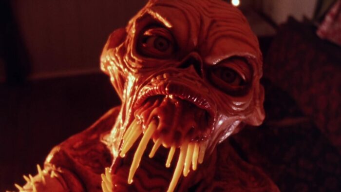 Vous vous êtes déjà demandé ce qu’il se passerait si à la place de ce pauvre Melvin, c’était un fétus qui était tombé dans le baril de déchets toxiques dans Toxic Avenger ? Non ? Ben moi non plus, mais The Suckling a pourtant tenu à répondre à cette question. Production méga fauchée de 1990, le film ne va pas faire pourtant dans l’originalité, passé son pitch de départ et une poignée de scènes qui, je l’admets, méritent à elles seules le coup d’œil. Si voir, pour le reste, des acteurs jouer comme des quiches prendre les décisions les plus stupides ne vous dérange pas, le tout dans un décor censé faire office de bordel et de clinique mais qui ressemblerait plutôt à la maison de la famille du réalisateur, ou du producteur, pour un film qui, au final, ressemble à un banal slasher, où les personnages vont périr, les uns après les autres, ne vous dérange pas. Alors donc ici, on a une femme enceinte, qui se rend dans la dite clinique, alors que quelques clients sont là pour satisfaire d’autres besoins. Pouf, on l’endort, et quelques instants après, pouf, on jette le fétus dans les toilettes, et il atterrit dans les égouts. Fin. Non je déconne, évidemment non, pas la fin, puisque juste au-dessus, tiens, un baril de déchets toxiques. Pourquoi ? Comment ? Qu’importe, puisque le contenu se déverse, contamine le fétus qui va alors grandir jusqu’à atteindre la taille d’un… homme en costume moche, avec au départ quelques tentacules, ce qui lui permet de faire sa première victime en faisant passer ses tentacules dans les canalisations, pour décapiter une pauvre femme de joie… noire évidemment, on ne va pas changer les habitudes du genre, le ou la noir(e) meurt en premier. Et la suite ? Une partie de cache-cache dans une minuscule maison, en particulier un salon, et ce qui fait office de vieille cave. Pourquoi ? Parce que la porte est fermée bien sûr, et que les messieurs n’ont pas assez de muscle pour la défoncer.