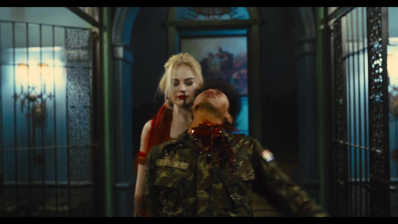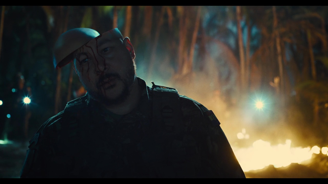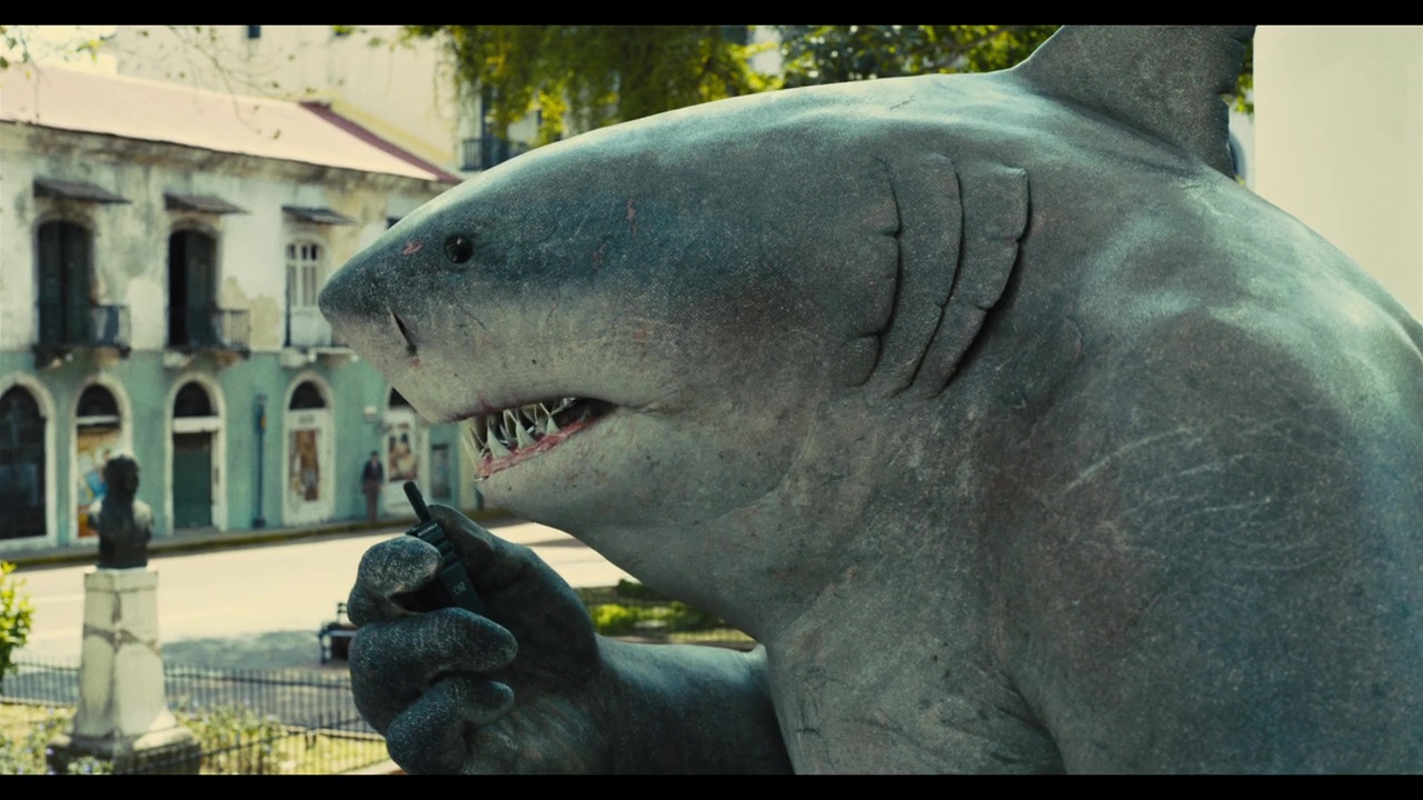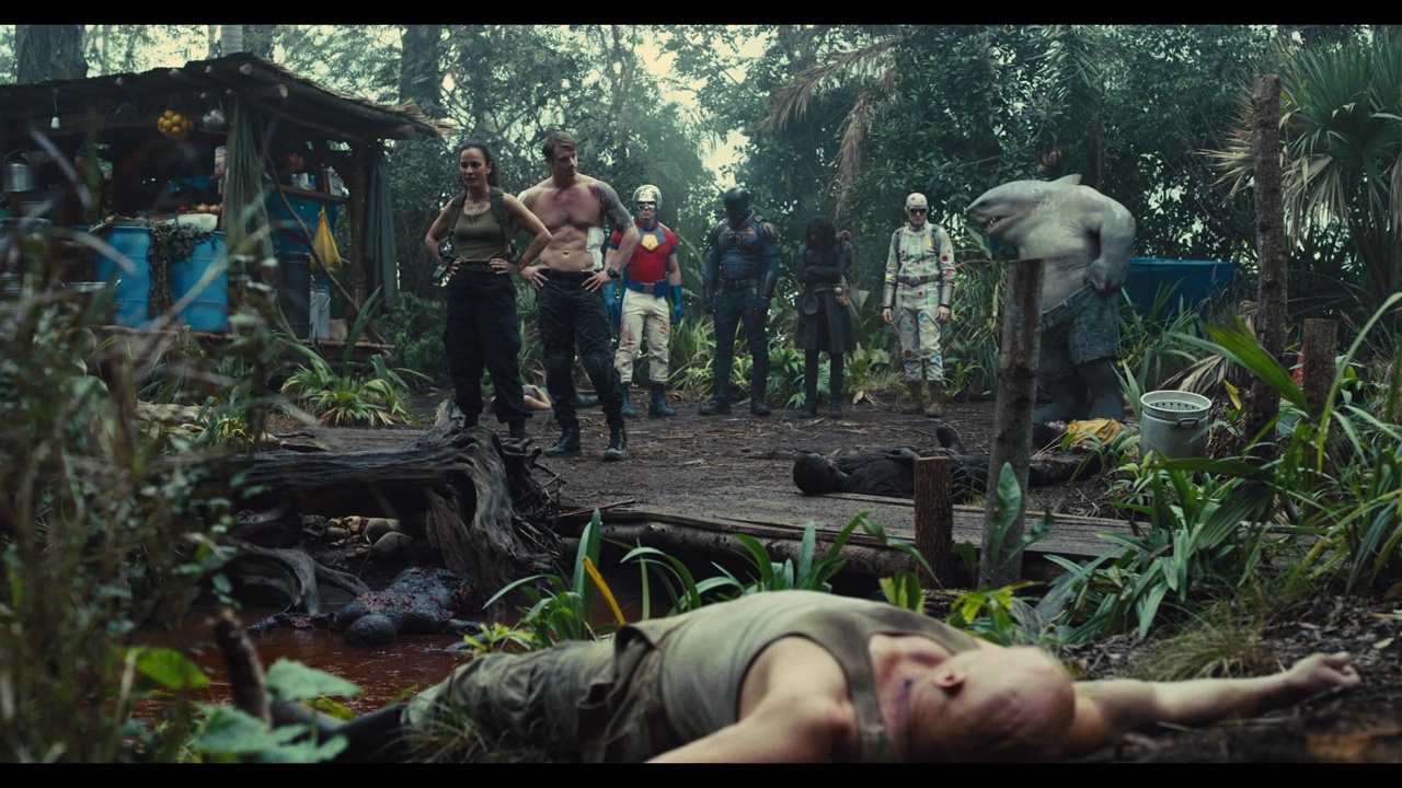 Mais voilà, du haut de ses 2h13, The Suicide Squad n’ennuie pas, il fait sourire, il divertira le spectateur, et c’est ce que l’on demande finalement à un blockbuster de 185 millions. Le tout avec son lot de décapitations, d’éventrations, de corps explosés, de corps mangés, de scènes à la con, de Fuck dans les dialogues, et aussi de bites, car James Gunn (qui a été formé à l’écurie Troma, voilà). En fait, le truc, c’est que The Suicide Squad commence fort. Sa scène d’ouverture, durant bien 15 minutes, est excellente, et dépasse même nos espérances les plus folles. C’est con, drôle, violent, rythmé, plutôt bien filmé, la musique signée John Murphy est cool. Ça place la barre si haut que forcément, la suite déçoit quelque peu, surtout quand le métrage s’éternise un peu trop sur ses personnages, sur leur passé, ou nous ressort quelques éléments scénaristiques déjà vus dans le premier film. Alors oui, le traitement est meilleur, et plus logique sur pas mal d’aspects, mais bon, voir un personnage encore partir à l’aventure car on menace sa fille (on touche pas à la famille a dit Baboulinet dans Fast and Furious), ou la fameuse équipe échanger un peu sur leur vie au coin du feu pour que l’équipe soit plus soudée, ben, c’est dommage en fait. Surtout quand durant la première partie, le scénario sépare plusieurs personnages, histoire d’avoir deux arcs narratifs différents avant que le tout ne se rejoigne. Mais bon, ça encore, on pourra dire, pourquoi pas. Autre gros défaut, et on le remarque malheureusement assez vite, les méchants de l’intrigue. James Gunn voulait volontairement des méchants de fond de tiroirs, de ceux qu’on oublie, qui ne sont pas très doués pour être méchants au final. Pourquoi pas, mais là, en soit, les grands méchants, ce sont juste des militaires, et pour tout vous dire, je les ai déjà oublié, et serait incapable de vous dire leurs noms. Je parle bien entendu des méchants en terme d’intrigue, car l’ennemi final lui est franchement sympathique et amusant. Rah, j’en dis des mauvaises choses sur The Suicide Squad, alors que j’aurais passé un bon moment devant.