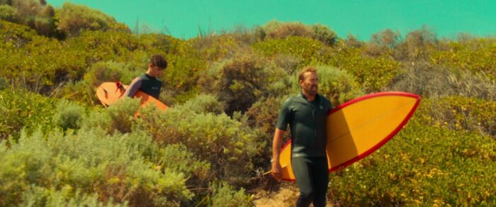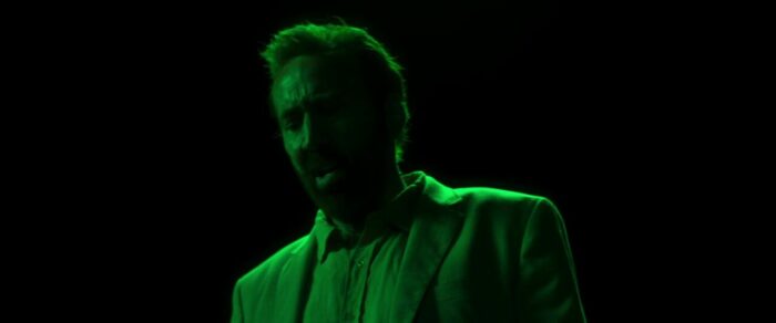 The Surfer, c’est donc une descente hallucinée dans la folie, et en ce sens, le film trouve encore plus de sens inséré à ce moment précis de la carrière de Cage, et à son renouveau, depuis Mandy, où il alterne délires méta, délire hallucinés, et semble donc créer sa propre mythologie, comme un nouvel acte de sa carrière, après une dizaine années de DTV pas si mauvais pour certains que beaucoup veulent le faire croire, mais plutôt impersonnels. Si The Surfer détient bien quelques traces du pur cinéma Australien, faire un tel film en 2025 avec Nicolas Cage tient presque de la logique, alors que le même film il y a 25 ans aurait été considéré comme une anomalie étrange, un film que peu de fans de l’acteur auraient vu, un peu à l’image de Bringing Out of the Dead (A Tombeau Ouvert de Scorsese) en 1999, qui débarquait après une série de blockbusters qui cartonnaient au box-office, en étant un drame extrêmement dépressif, et passé totalement inaperçu auprès du public. Bien qu’imparfait, et possédant sans doute quelques petites longueurs de par son concept même, puisque plus qu’un récit, le film est un concept à lui tout seul, j’ai été séduit par la proposition de The Surfer, son ambiance moite et pas toujours agréable il est vrai. Peut-être aussi que le grand défaut du film est de vouloir accumuler les fausses pistes au lieu de totalement lâcher prise pour nous emmener avec lui totalement. Toujours est-il que si vous attendez un thriller simple, une vengeance, ou qu’importe, vous risquez de tomber de haut malgré tout.