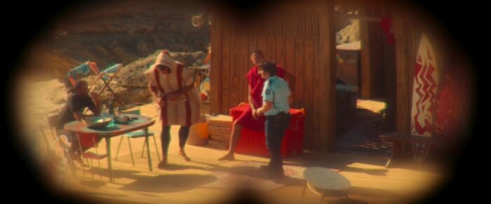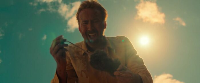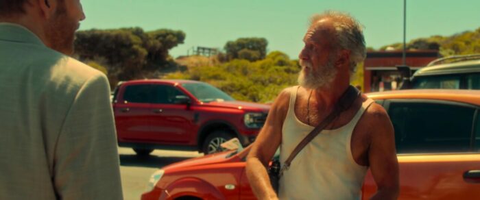 Chaleur constante que le réalisateur parvient parfaitement à retranscrire à l’écran, manque d’eau, téléphone en panne que Nic ne peut recharger, vendeurs du coin peu motivés pour l’aider, locaux jamais amicaux, adeptes du vol et du harcèlement, batterie de voiture qui tombe à plat, sans oublier ce qui sera dans un premier temps le seul soutien de notre héros, un sans-abris trainant dans le coin. Le film pousse le délire assez loin si bien qu’à plusieurs reprises, le doute est permis. Et si tout ça n’était qu’un délire dans la tête de ce brave Nic ? En tout cas, peu importe la lecture que vous souhaiterez faire du film (ou pas hein), The Surfer peut fonctionner. Métaphore de la difficulté à trouver un logement, satire des locaux hautains et un brin conservateurs, pur effet de style psychédélique, chute d’un homme qui peut toujours avoir de nouvelles choses à perdre. Tout ce qu’il faut, c’est se laisser porter, et accepter en tout cas que The Surfer n’est pas un film dont le simple but est de divertir en racontant une histoire simple allant de A à B. Plus l’intrigue avance d’ailleurs, et donc plus le personnage tombe bas, plus on se dit que ce personnage est clairement taillé pour être interprété par Nicolas Cage et convient parfaitement à son style de jeu parfois outrancier. Et pourtant, à quelques rares situations près (le coup du rat, juste énorme), The Surfer n’est pas une comédie, n’ironise jamais totalement, et ne fait pas spécialement rire. En réalité, c’est plutôt l’opposé, on se retrouve plutôt perplexe, perdu, à se poser des questions, nous aussi aveuglés par ce soleil écrasant, avec cette plage à l’eau si bleu, si proche, mais pourtant si inaccessible pour le héros.
