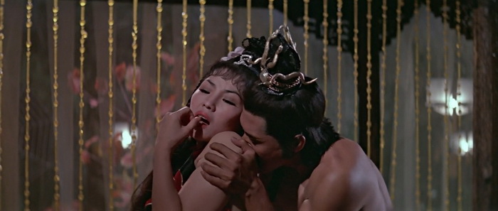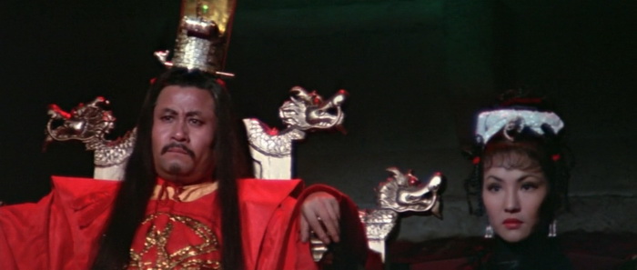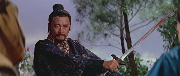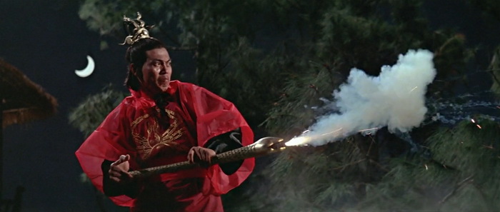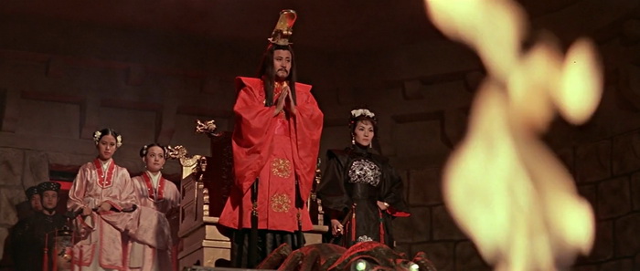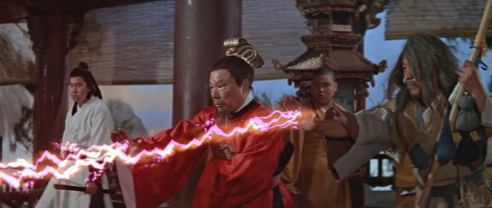 Les scènes d’action ne sont au final pas très nombreuses mais sont de qualité, avec des affrontements secs, parfois sanglants. Ils ne cherchent jamais à être spectaculaires, mais Chu Yuan les remplit d’intensité dramatique afin de leur donner plus de force. Ils ne sont pas très spectaculaires, certes, mais ils sont néanmoins travaillés et, une fois de plus, Tang Chia fait un très bon travail chorégraphique, ici aidé par Yuen Cheung-Yan du clan Yuen qui semble avoir amené toute sa folie dans les scènes impliquant des éléments plus fantastiques. Car bien avant son délirant et psychotronique Descendant of the Sun, Chu Yuan mettait déjà en scène ici du bon gros délire à base de lasers, de lumières colorées et de fumées épaisses, avec des effets spéciaux grattés à même la pellicule qui raviront les amateurs de bisseries du genre. Certes, c’est concentré dans le dernier acte, mais c’est bel et bien présent et surtout complètement assumé. Une des forces de The Web of Death, c’est son casting et, outre l’inimitable Lo Lieh, qui une fois de plus semble prendre un malin plaisir à jouer un méchant très méchant et très machiavélique, C’est Yueh Hua (L’Hirondelle d’Or, Killer Clans) et Ching Li (The House of 72 Tenants, The Boxer From Shantung) qui tirent leur épingle du jeu. Le premier incarne un héros plus complexe qu’il n’y parait, aussi bien à l’aise dans l’action que dans le drame et même dans les quelques petites touches d’humour du film. La deuxième vole la vedette à tout le monde dès qu’elle est à l’écran avec son charisme magnétique. Mais dans l’ensemble, c’est tout le casting qui fournit un très bon travail, certes parfois un peu théâtral comme c’était souvent dans le cinéma de la Shaw Brothers (et dans le cinéma Hong Kong de cette période de manière générale) mais toujours en adéquation avec ce qu’il se passe à l’écran, en particulier lorsqu’il s’agit de luttes de pouvoir et autres machinations. Il résulte de tout ça un divertissement réussi, bien moins mineure dans le genre que certains veulent bien le dire, mais surtout une expérience assez singulière ô combien réjouissante.