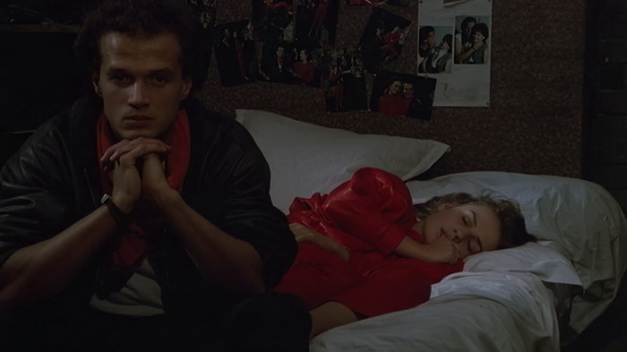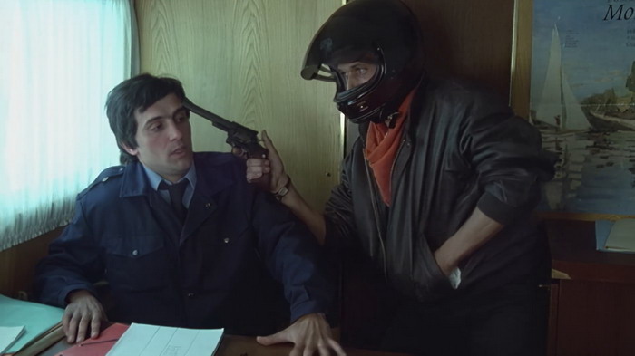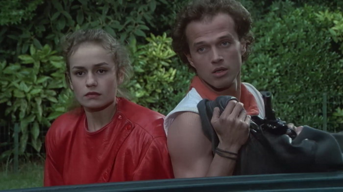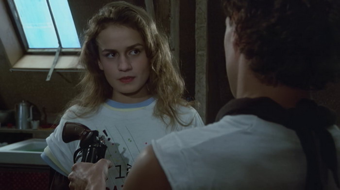 Lorsque le film sort en 1984, ça fait un ou deux ans que le climat sécuritaire en France est très tendu. Le gouvernement de Mitterrand de 1981, qui avait suscité un immense espoir de changement social, commence à vaciller et impose une période de rigueur avec une politique d’austérité. C’est l’explosion du chômage des jeunes dans les milieux défavorisés qui ne croient plus en l’état et qui ont du mal à imaginer un futur. En parallèle, d’énormes tensions naissent entre ces jeunes et la Police après que cette dernière ait fait usage à plusieurs reprises de leurs armes contre des jeunes. Des faits divers qui ont défrayé la chronique et ont alimenté de nombreux débats dans les médias, mais aussi à l’Assemblée Nationale, sur la légitime défense de la Police. Si le film s’appelle « Tir à Vue », c’est qu’il y a une raison. En plus de ça, 1984 est l’année où le Front National réalise un score historique aux élections européennes, pas moins de 11%, accentuant un discours sur l’insécurité qui est désormais sur toutes les lèvres, aussi bien de la population que des politiques. Bien qu’on puisse regarder Tir à Vue sans connaitre la situation électrique de l’époque, en avoir connaissance permet de le voir sous un autre angle et d’appréhender certaines scènes différemment. Et donc Tir à Vue, c’est quoi ? C’est une histoire de voyous, d’un jeune homme en révolte contre la police et le gouvernement, une histoire comme tant d’autres à cette époque mais qui marque par son côté sombre, nihiliste et même mélancolique. On y suit donc deux paumés, deux jeunes marginaux que le hasard va réunir, et qui vont s’improviser Bonnie and Clyde, vivant de larcins, de braquages, de cachettes et de sexe. En face d’eux, un duo de policiers, l’un usé et humain, désabusé car coincé dans un système qui le dépasse, l’autre plus agressif, raciste et homophobe, bien plus en adéquation avec le climat social du moment. L’une des forces du film, c’est que le manichéisme s’efface un peu. On a d’un côté des gamins perdus et de l’autre des policiers dépassés, des personnages caricaturaux qui enlèvent clairement de la subtilité à Tir à Vue mais qui pourtant s’inscrivent bien le propos du film.