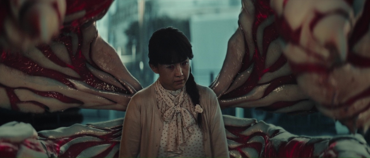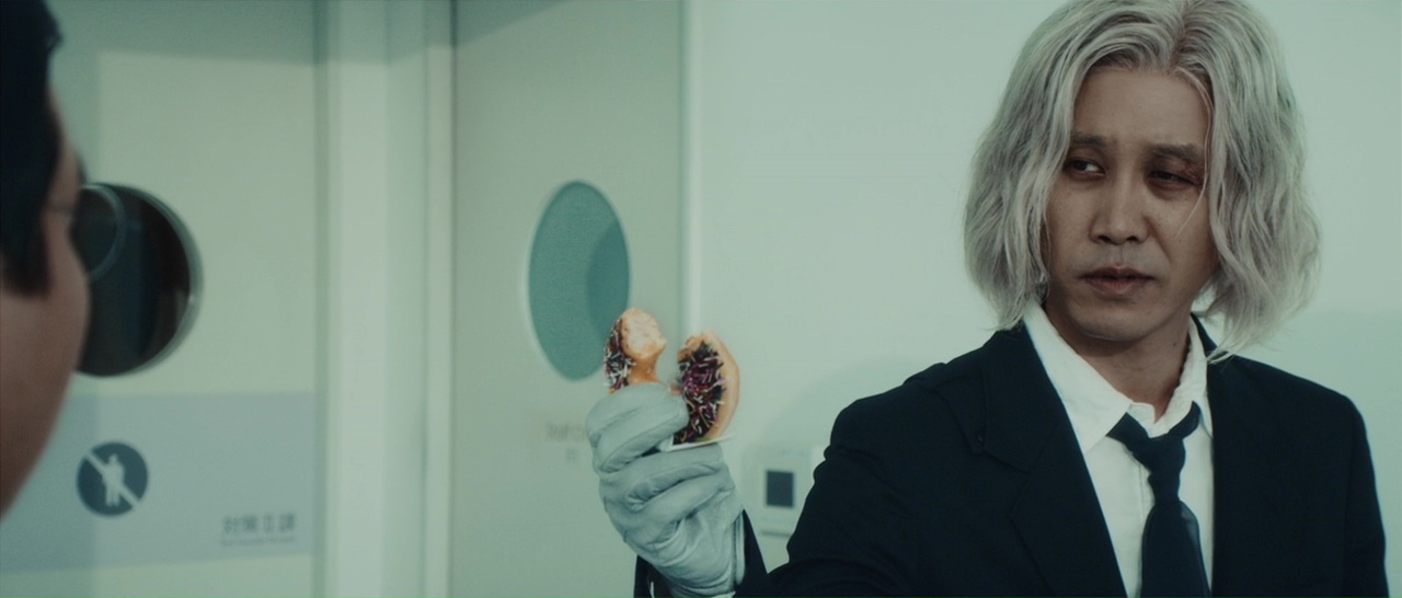 Et nous y voilà, encore une adaptation de manga, mais cette fois-ci, je le promets, Miike Takashi n’a rien à voir avec. À la place, un certain Hagiwara Hentarô. Ça ne vous dit rien ? Rassurez-vous, moi non plus, puisqu’il n’a fait que des courts métrages principalement, et un métrage en 2016, Anniversary, réalisé à plusieurs. Tokyo Ghoul donc, encore une fois, adapte un manga. Après Death Note, après L’Attaque des Titans, Gantz, Nana, Detroit Metal City, Parasyte, I am a Hero, Another, Terra Formars, et avant le film Full Metal Alchimist que les pauvres Japonais ont du subir le 1er Décembre 2017 dans les salles obscures (réalisé par Sori Fumihiko, ce qui ne va pas en rassurer certains)… De là à dire que le Japon ne produit plus que ça, il n’y a qu’un pas, que je ne franchirais pas (pas encore). Tokyo Ghoul, bon, je n’ai ni lu le manga ni vu l’animé, mais c’était prévu, il fut un temps, elle se retrouvait dans ma liste Netflix aux côtés de l’Attaque des Titans. Depuis, j’ai regardé les deux, et si pour l’Attaque des Titans, je le vis très bien, et bien l’anime de Tokyo Ghoul, c’est comme le film : pas très passionnant. Par contre, le film lui, en fouillant un peu, voilà que beaucoup crient à la meilleure adaptation de manga depuis des lustres. En fait, quasiment tout le monde, sauf… notre brave Oli. Alors soyons clairs, je ne serais pas aussi méchant qu’Oli, mais pas aussi gentil que l’intégralité du public. En fait, c’était juste moyen. Pas aussi mauvais apparemment que certaines adaptations, pas meilleur que d’autres. Si pour moi, la fidélité se mesure en terme d’ambiance, d’atmosphère, pas à reprendre mot pour mot les dialogues ni à refaire à l’écran les mêmes décors, les mêmes personnages, les mêmes cadrages, et bien Tokyo Ghoul reste fidèle à l’anime, dans le sens où il reprend tout ce qui était moyen dans son histoire de base. Et comme je le dis toujours (même si Iris me contredira totalement), ce qui fonctionne sur un support ne fonctionne pas forcément sur un autre support, d’où le mot « adaptation ». Et parfois, on ressent l’influence manga clairement dans le métrage.
