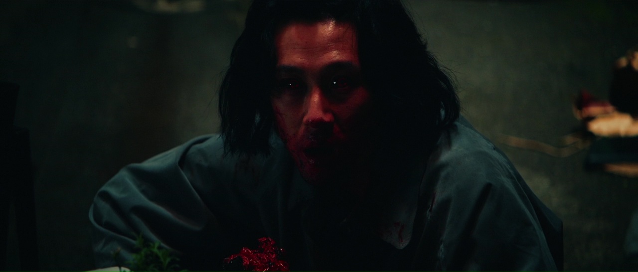 Tokyo Ghoul se veut sombre et sérieux, alors quand tout à coup, on voit une voiture faire un tonneau, glisser au sol sur facile 30 mètres avant de traverser un mur et de s’arrêter en plein centre d’une pièce, pour moi c’est trop typé manga et ça perd tout le réalisme. Mais bon, à quoi bon parler de réalisme dans un film qui nous propose une réalité alternative où Tokyo est envahit par des goules, des vampires se nourrissant de sang humain. Et au milieu de cet univers, on nous offre le personnage de Kaneki Ken, un jeune étudiant timide, et son premier rendez-vous galant tourne mal. Très mal, en mode je me fais péter le bras, transpercé le torse et lécher le visage par une goule qui devait être ma future petite amie. Et je ne vais pas mentir, j’ai aimé ce début prometteur. Qui n’innove pas franchement et ne surprend pas vraiment non plus, à l’exception des espèces « d’armes » sortant du dos des goules. Mais c’est plutôt sobre, la photographie est jolie, le film n’hésite pas à se montrer saignant ou à nous offrir quelques membres coupés, et du coup, ça se suit bien. Blessé, grièvement, notre héros est sauvé, mais en sortant de l’hôpital, il est changé, car oui, il est devenu à son tour une goule. Il ne peut donc plus manger des aliments classiques, seul le sang humain peut couper sa fin, et il sera recueillît par un groupe de goules tenant un restaurant, et qui lui apprendront que le second aliment que les goules peuvent prendre, c’est du café. Voilà qui ferait bien plaisir à l’agent spécial Dale Cooper (oui je sais, Twin Peaks m’a marqué). D’ailleurs, je l’ai toujours dit, le café, c’est la vie ! Et jusqu’à son arrivée dans ce restaurant en fait, j’ai voulu croire à ce Tokyo Ghoul.