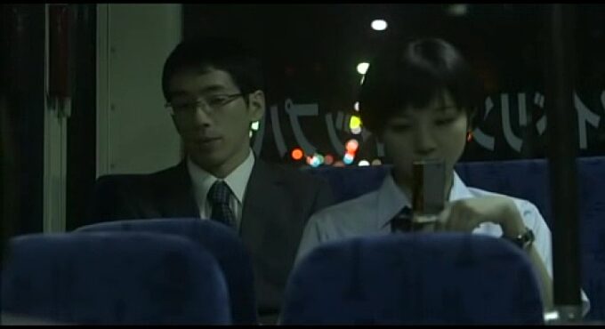 Torihada Gekijôban donc, c’est comme les téléfilms. Plusieurs courtes histoires, six, le tout entrecoupé par le fil rouge, où Tanimura travaille dans un centre d’appel, et qui, jour après jour, aide une collègue en prenant l’appel d’une dame que l’on pourrait qualifier… d’emmerdante et malpolie, passant son temps à insulter au téléphone. Première excellente surprise, encore plus provenant d’un film que l’on pourrait qualifier de film à sketchs, c’est que l’ensemble des histoires tiennent la route. Oui, il y a bien, comme d’habitude, des histoires meilleures que d’autres, et donc forcément, des moins bien, mais l’ensemble tient la route, l’ensemble est passionnant, et certaines histoires sont franchement très réussies. Le plus indéniable est l’absence d’élément surnaturel, donnant un cachet tout simplement réaliste à l’ensemble. On aura en gros, pour vous énumérer un peu tout ça, l’histoire d’un homme trainant autour du garage d’une jeune femme le soir, celle d’un livreur qui après une livraison se fait stalker par une femme étrange, d’un salaryman dans un bus témoins d’emails envoyés un peu étranges provenant d’une autre passagère, d’un voisins venant tous les soirs proposer un bon ragout, de bouts de papiers avec des nombres laissés dans les poches d’une femme à son insu et d’une étrange assurance par téléphone, le tout avec en prime l’intrigue de base concernant notre actrice fétiche. Des histoires variées, certaines étant donc tout simplement excellente. Alors attention, on ne va pas franchement dire que le contenu du métrage est flippant et va vous empêcher de dormir, mais l’ensemble a sa petite ambiance qui par moment parvient à faire son effet. Par une certaine étrangeté au quotidien, une étrangeté réaliste du coup.