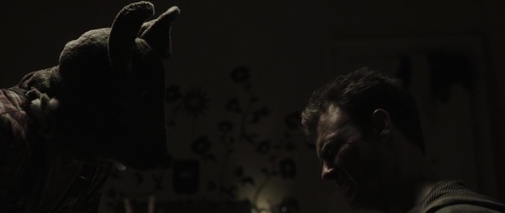 La famille ne tarde pas à arriver sur place, et quelques conflits plus tard, et après la découverte des restes de squatteurs, nous voilà face au premier cliché. Le shérif leur dit qu’ils n’ont rien à craindre. Nous savons pertinemment que ce n’est pas le cas, mais soit ! Malgré son faible budget, Torment tient la route. Ses images sont belles, cette maison perdue au milieu de la forêt, souvent entourée par une petite brume, a de la gueule, et le réalisateur, dont il s’agît du quatrième film, a plutôt bien géré l’ensemble. Il distille la tension doucement, avec quelques apparitions des intrus, toujours tapis dans l’ombre, déjà dans la maison, et lorsque la nuit tombe finalement, le tout se bouge. Liam est enlevé (heureusement, car les enfants souvent, ça devient chiant dans le cinéma de genre), et Cory et Sarah sont poursuivis par ces étranges squatteurs portant des masques d’animaux, allant de la souris au cochon. Les personnages ne sont au final pas si stupides que ça, nous avons vu bien bien pire dans le genre, et luttent pour leur survie. Malgré la capture de certains personnages, et les possibilités de torture, le métrage se fait très soft et ne part jamais dans le sanguinolent, préférant jouer sur la tension et la psychologie. Bon point donc, car au final, même si Torment n’est pas un chef d’œuvre d’écriture, il tient plutôt bien la route.