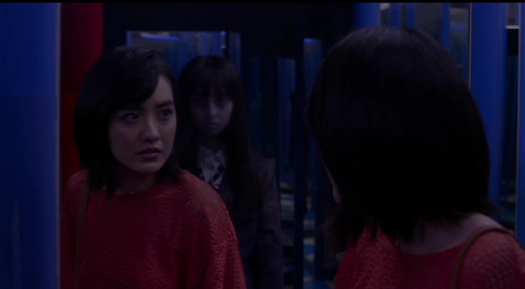 Scénario assez banal, malédiction qui ne restera pas dans les mémoires, personnages un peu stupides, idoles qui crient pour rien (oui j’ai du par moment baisser le son du film), mise en scène pas honteuse mais jamais inspirée non plus. Là vous croyez que Toshimaen est un très mauvais film, et qu’il n’y a rien à en sauver. Et pourtant, tout n’est pas à jeter. Malgré un scénario banal et des situations souvent prévisibles et déjà vues (les personnages qui disparaissent les uns après les autres, tour des différentes attractions, apparitions furtives), le film tire par moment son épingle du jeu. Lors de certaines attractions par exemple, comme celle avec tous les miroirs, qui parvient à jouer astucieusement avec les reflets, et donc à nous faire perdre nos repères, ou lors de quelques jeux de lumières plutôt habiles. On a même quelques plans qui ont franchement de la gueule. Et bien entendu, l’ensemble ne dure que 1h21, générique de fin compris, ce qui donne forcément un film plutôt rythmé et qui ne perd que rarement de temps en bavardages inutiles, à quelques flashbacks un peu vains près. Et j’aurais beau dire beaucoup de choses sur les idoles, et il est vrai que certaines sont énervantes, une bonne moitié, mais l’autre moitié ne s’en sort pas trop mal malgré des personnages creux et parfois énervants. Clairement pas le haut du panier dans le genre bien morne récemment, mais pas non plus le bas du panier. Dommage que ce soit finalement juste assez moyen et facilement oubliable.