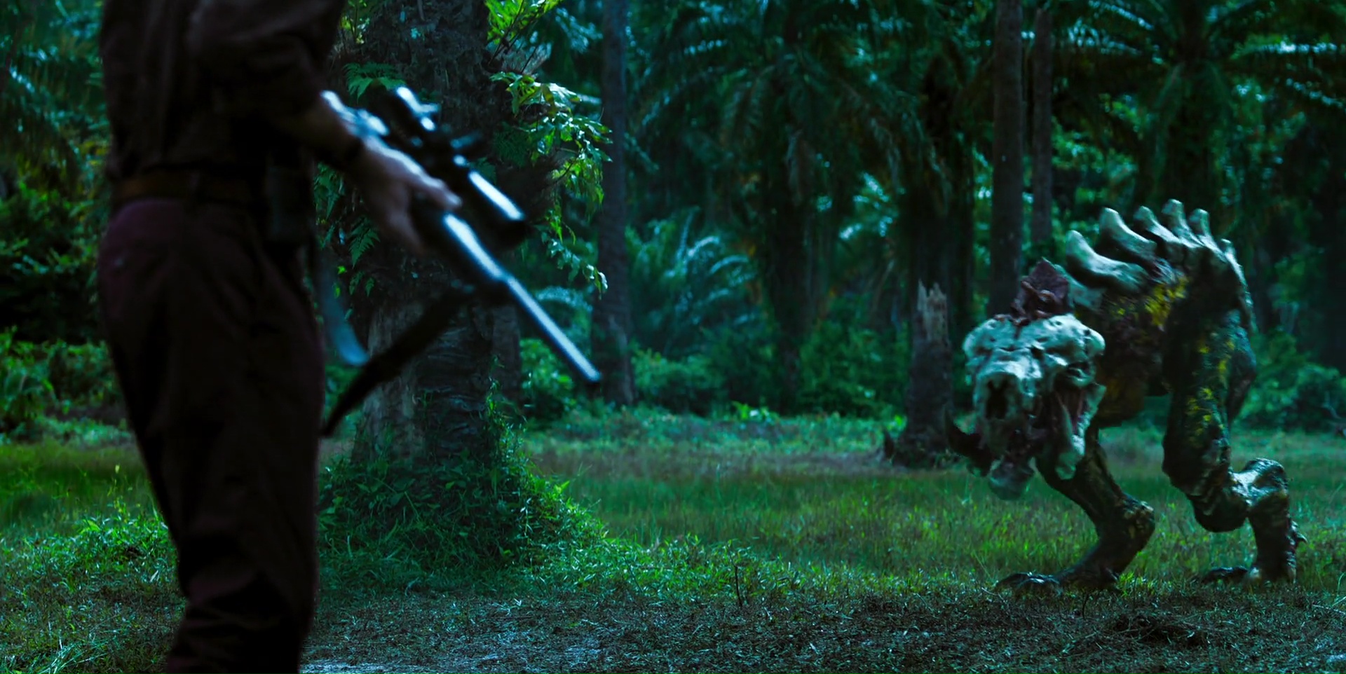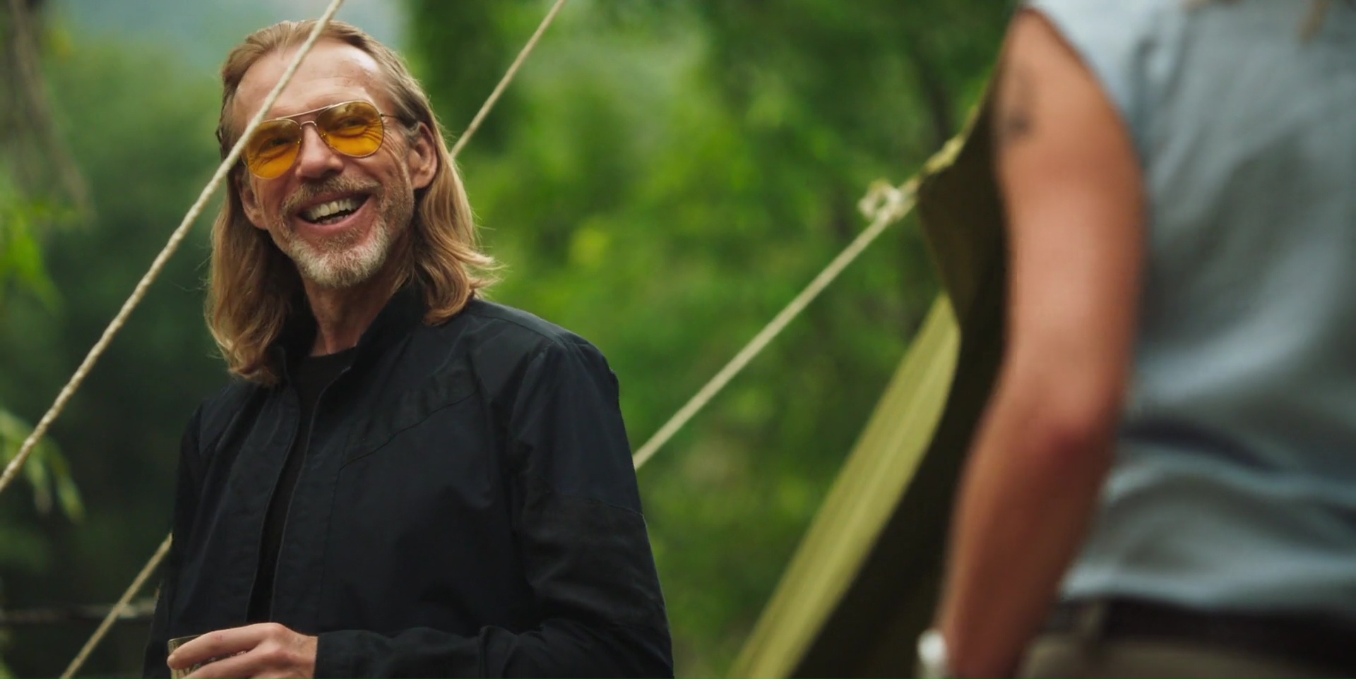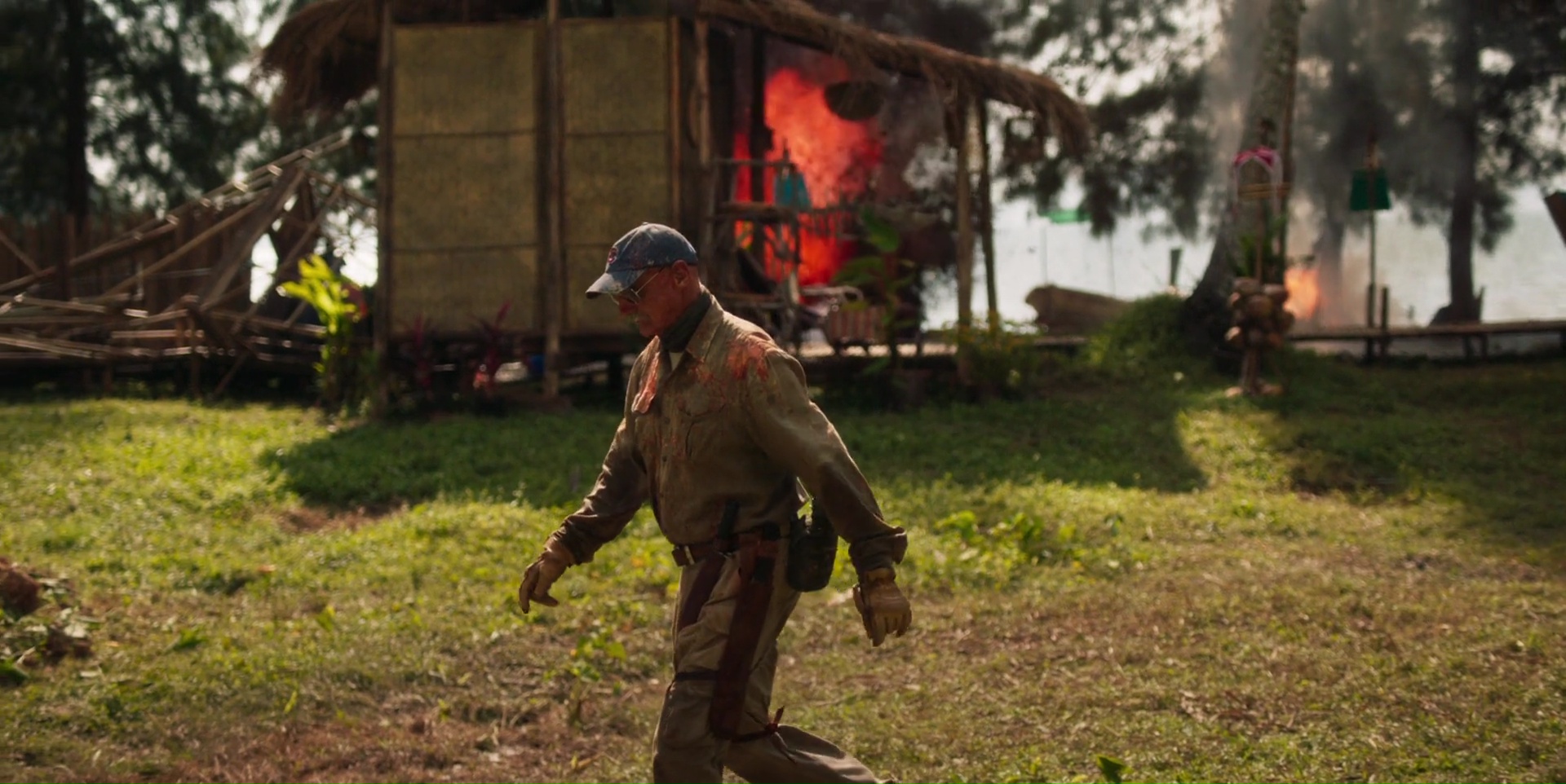 Pas grand-chose. Après avoir voulu délocaliser l’aventure dans le 6 dans des lieux enneigés, Shrieker Island veut être l’opus du renouveau, tout en étant clairement l’opus qui citera le plus le reste de la saga. N’ayez crainte, Burt Gummer est toujours présent, et après tout, c’est lui le lien entre absolument tous les opus, même lorsque l’histoire se déroule 100 ans en arrière dans Tremors 4. On délocalise ce coup-ci sur une île tropicale (le film fut tourné en Thaïlande), et on met dans les pattes de Burt, venu une nouvelle fois sauver la situation, une équipe de chasseurs expérimentés qui sont là pour une petite partie de chasse. Pour faire plaisir aux fans, on nous remet également les fameux Shrieker, la version sur patte et voyant avec des infrarouges à détection de chaleur, venus tout droit de Tremors 2. Et avec un tel procédé et surtout le nouveau lieu de l’action, il n’est pas bien difficile de comprendre vers quoi Tremors 7 veut aller. Oui, on pense bien évidemment à Predator. Et si le spectateur ne l’a pas compris, pas grave, le film citera le film culte de McTiernan à de nombreuses reprises, en reprenant quelques éléments clés (la gatling dégommant toute la jungle, l’astuce de se recouvrir de boue), tout en offrant à la fameuse vue subjective à détection de chaleur des Shrieker un bruitage qui n’est pas sans rappeler celui de l’alien rasta de l’espace !
