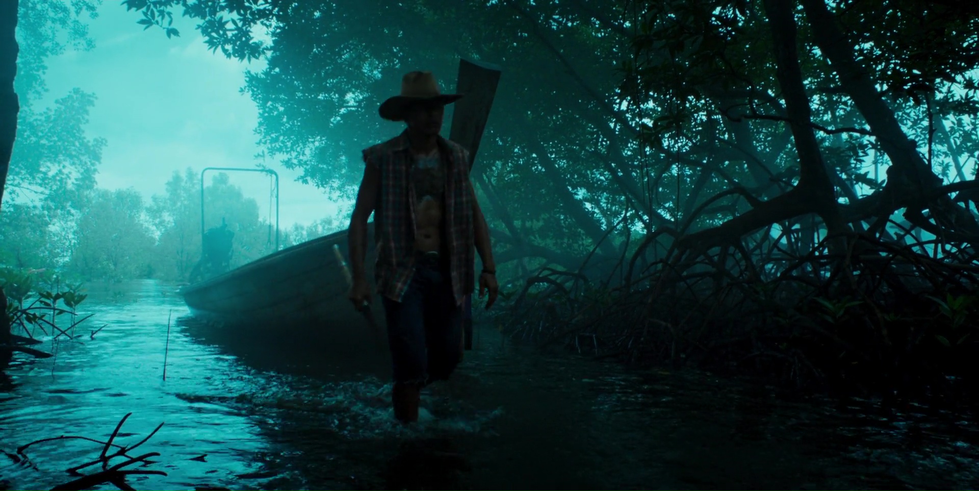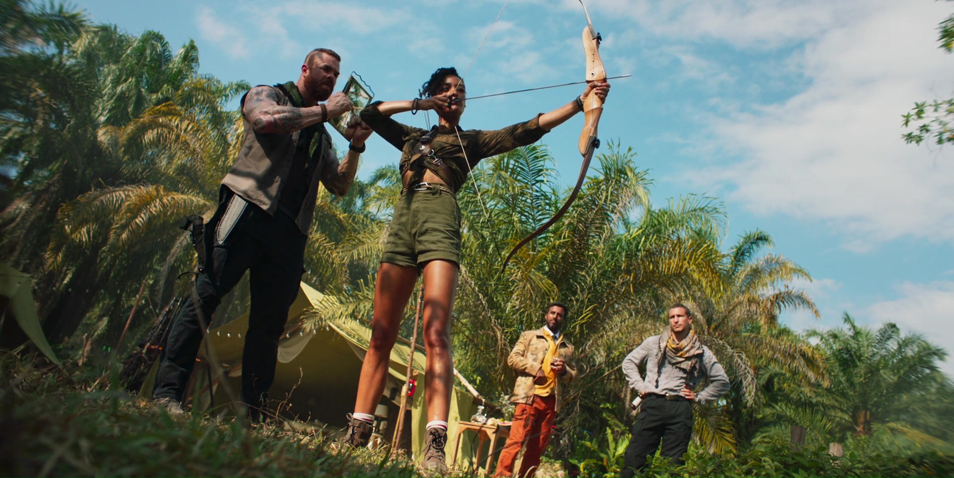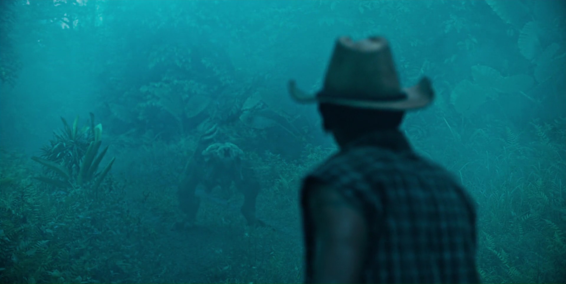 Pas grand-chose. Après avoir voulu délocaliser l’aventure dans le 6 dans des lieux enneigés, Shrieker Island veut être l’opus du renouveau, tout en étant clairement l’opus qui citera le plus le reste de la saga. N’ayez crainte, Burt Gummer est toujours présent, et après tout, c’est lui le lien entre absolument tous les opus, même lorsque l’histoire se déroule 100 ans en arrière dans Tremors 4. On délocalise ce coup-ci sur une île tropicale (le film fut tourné en Thaïlande), et on met dans les pattes de Burt, venu une nouvelle fois sauver la situation, une équipe de chasseurs expérimentés qui sont là pour une petite partie de chasse. Pour faire plaisir aux fans, on nous remet également les fameux Shrieker, la version sur patte et voyant avec des infrarouges à détection de chaleur, venus tout droit de Tremors 2. Et avec un tel procédé et surtout le nouveau lieu de l’action, il n’est pas bien difficile de comprendre vers quoi Tremors 7 veut aller. Oui, on pense bien évidemment à Predator. Et si le spectateur ne l’a pas compris, pas grave, le film citera le film culte de McTiernan à de nombreuses reprises, en reprenant quelques éléments clés (la gatling dégommant toute la jungle, l’astuce de se recouvrir de boue), tout en offrant à la fameuse vue subjective à détection de chaleur des Shrieker un bruitage qui n’est pas sans rappeler celui de l’alien rasta de l’espace !