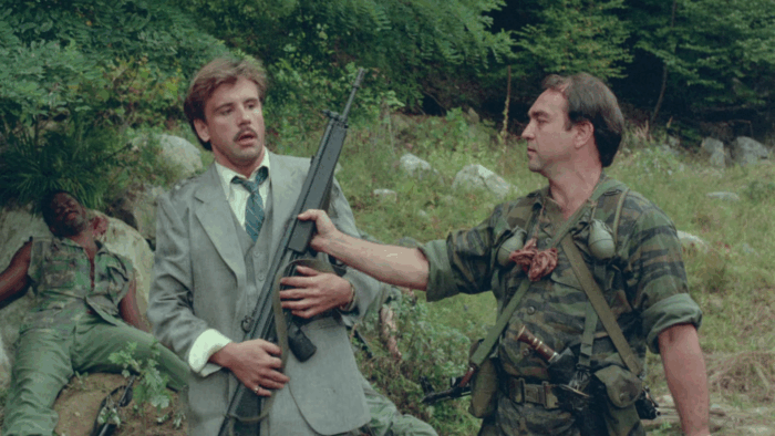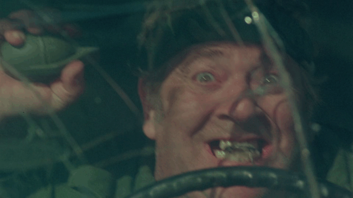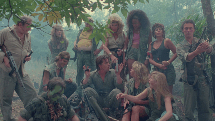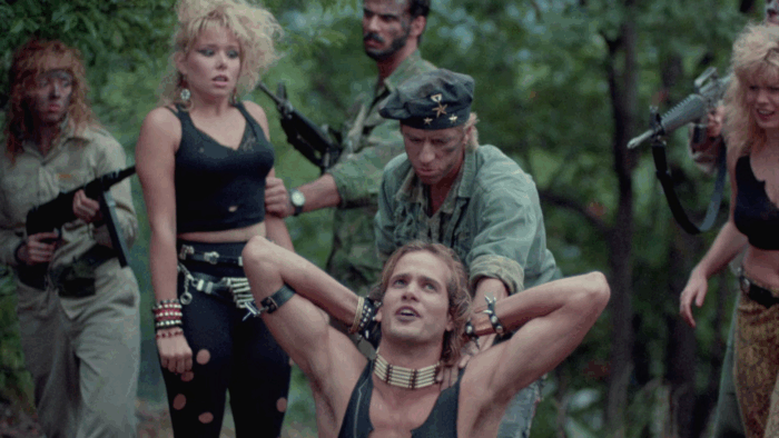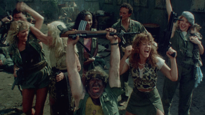 Devenu l’un des symboles du gore rigolard des années 80, The Toxic Avenger est un succès pour la Troma, au même titre que Class Of Nuke ’Em High deux ans plus tard. Lloyd Kaufman et Michael Herz veulent alors passer à la vitesse supérieure avec un budget record de deux millions de dollars investis dans une production qui pastiche le cinéma Reaganien des années 80. Ce film, ce sera Troma’s War, l’un des projets les plus ambitieux du studio mais aussi celui qui a failli le mettre sur la paille. Tourné dans les bois du New Jersey, Lloyd Kaufman accumule les blessés graves, les plaintes des habitants locaux, le tournage prend du retard et le budget explose. Après un montage chaotique, le potentiel distributeur du film ne trouve pas le métrage à son goût et se retire. Sans promo et avec une sortie limitée, Troma’s War est un échec commercial et critique, même les fans de la Troma ont rejeté un film qui change complètement de registre. Éclipsé par The Toxic Avenger, Tromeo And Juliet, Terror Firmer, Citizen Toxie et autres Poultrygeist, Troma’s War est un film peu cité, voire oublié quand on parle de la Troma. Il s’agit pourtant d’une œuvre représentative du studio, une tentative de faire de « l’esprit Troma » une marque de fabrique qui aurait pu s’étendre à d’autres genres.