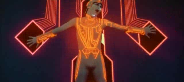 Bon mais Tron donc, de quoi ça parle et est-ce que c’est bien ? Tron nous parle donc de Kevin Flynn, qui après quelques soucis avec son employeur, décide de s’infiltrer la nuit dans leurs locaux, et se fait malheureusement carrément téléporté par un laser dans le monde informatique. Tron oui, c’est l’homme face à sa propre création, ou plutôt plongé en plein dans sa création. Tron, c’est tous les clichés d’aujourd’hui avant qu’ils ne deviennent des clichés, et c’est tout simplement le monde de l’informatique qui prend vie sous nos yeux, avec les utilisateurs, leurs avatars numériques à leur image, les données, les virus et anti-virus prenant la forme de tanks. Et pour 1982, à une époque où l’informatique n’était pas encré dans notre culture et que tourner sur un fond bleu était encore rare, Tron fait office de film révolutionnaire. Oui, Tron aura été une grande influence pour la conception des images numériques. Au final, on peut dire que l’on doit beaucoup au film (ou qu’on peut lui en vouloir vu l’utilisation abusive de ces effets aujourd’hui). Est-ce que Tron fonctionne encore aujourd’hui, surtout avec sa suite qui aura remit son visuel au goût du jour ? Et bien oui. Tron reste toujours impressionnant, Tron est toujours une aventure prenante malgré des défauts évidents, et la course poursuite en lumicycle envoie toujours du pâté aujourd’hui. De plus, on ne va pas mentir, mais le film est aidé par un casting qui fait plaisir, avec notamment Jeff Bridges dans le rôle principal de Kevin Flynn, et David Warner, habitué aux rôles de méchant, et qui joue… oui je sais, elle est facile, le méchant ! Malgré tout, quelques petits défauts sont là, et étaient déjà là à sa sortie.