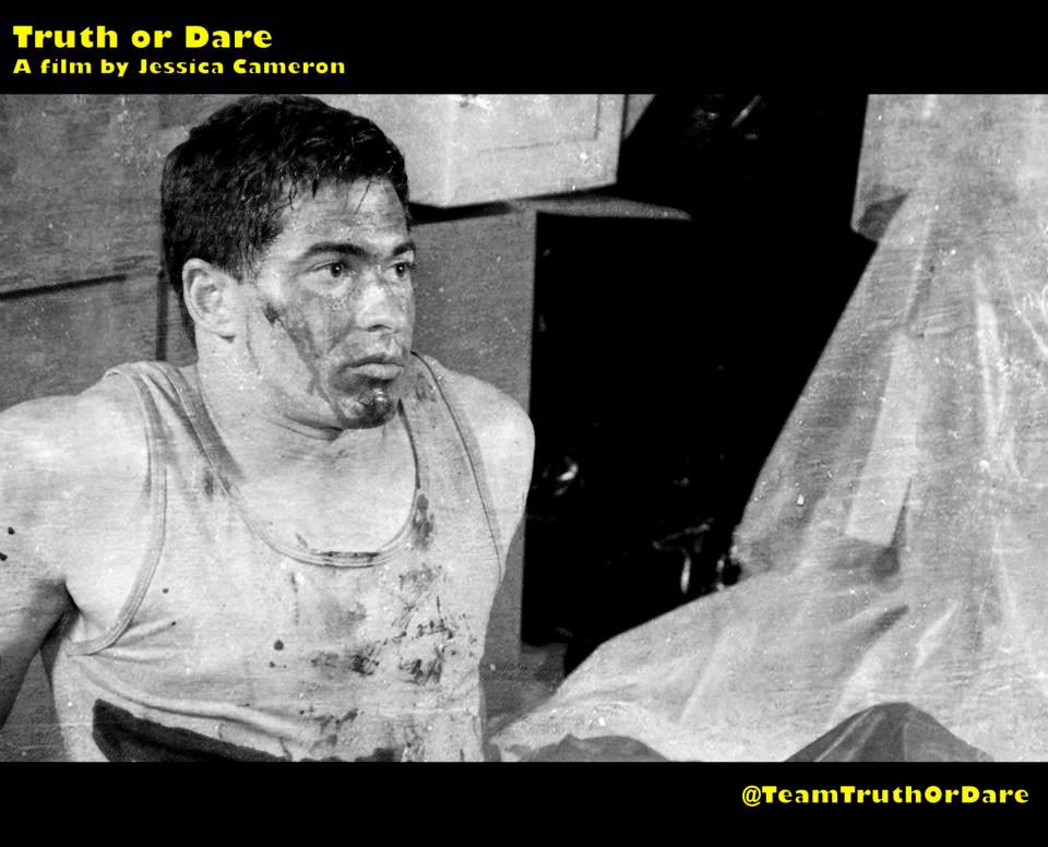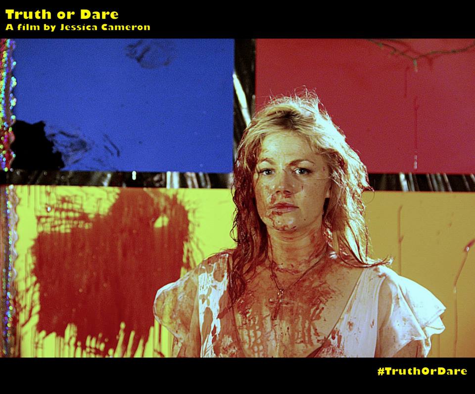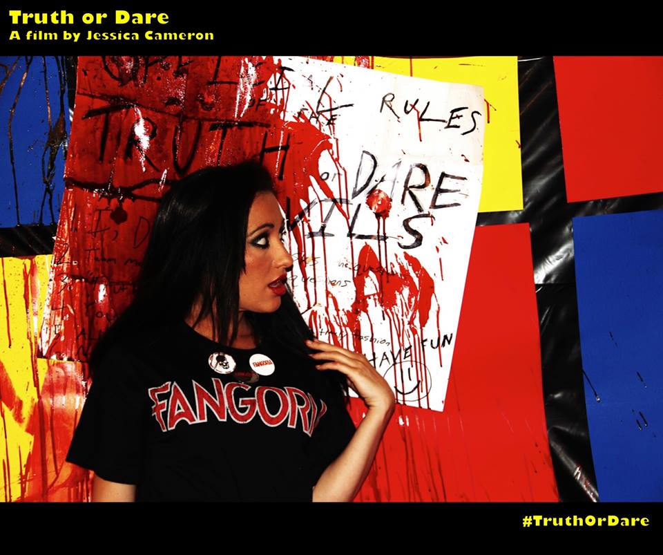 Après quelques années à tourner dans des courts métrages et petites productions, Jessica Cameron décide en 2013 de passer à la vitesse supérieure. Ainsi naquit le projet Truth or Dare, qu’elle devait au départ simplement coécrire et produire, en plus d’y tenir l’un des rôles principaux. Mais face au refus des réalisateurs qu’elle a en tête pour le projet, la voilà qui se retrouve catapultée au poste de réalisatrice. Chose qu’elle appréciera puisqu’elle retouchera plusieurs fois à la caméra par la suite, jusqu’à son récent Mania, faisant actuellement le tour des festivals. Truth or Dare donc, un film au scénario simple, que l’on pourra même qualifier de déjà vu par ailleurs. Une bande de jeunes qui connaissent un certain succès grâce à des vidéos sur internet, bien entendu truquées, qui se font séquestrer lors de leur nouveau tournage par quelqu’un se revendiquant leur fan numéro 1. Plus de trucages, ce fan va les pousser à jouer à action ou vérité, une version bien entendu tordue, violente et parfois sexuelle également. Un mensonge et c’est le coup de couteau, un refus de faire une action et c’est une balle dans la tête. Le film va, de manière relativement simple, poser son ambiance pour doucement faire monter la tension et nous amener vers des horizons beaucoup plus sombres et malsains, tout en développant quelques thèmes en soit peu nouveaux.