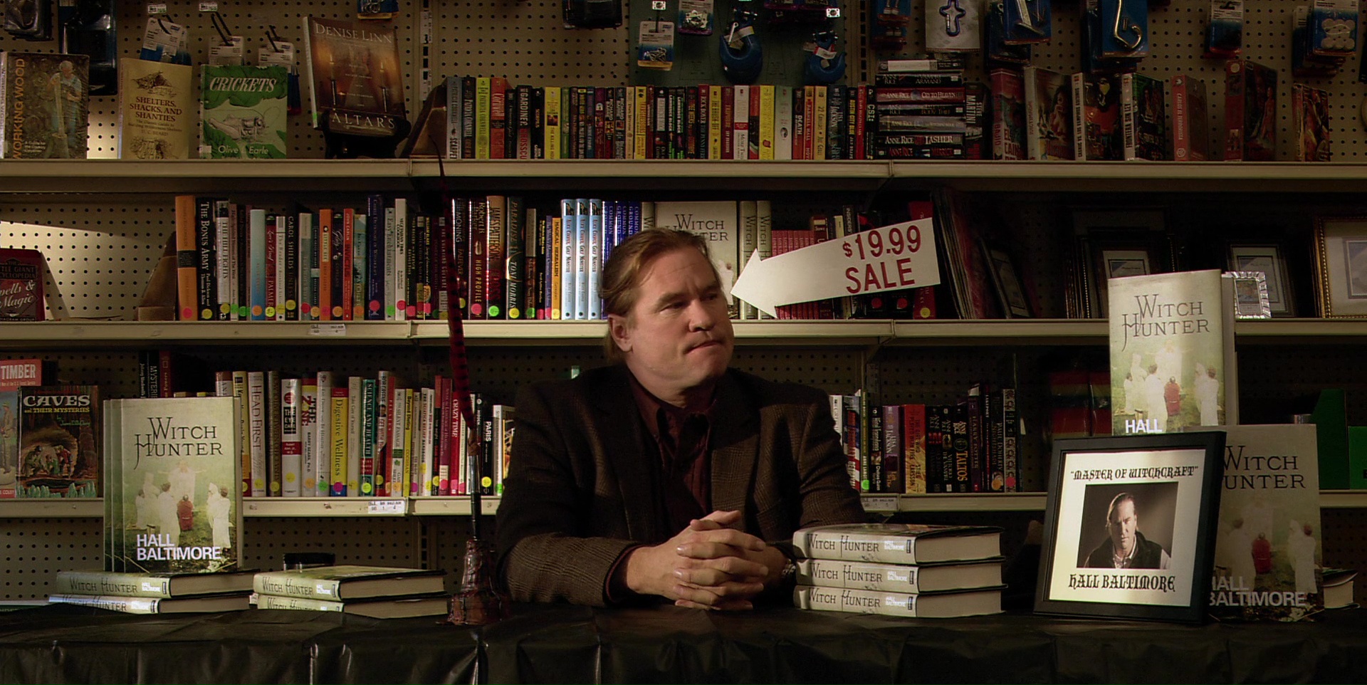 Twixt aux premiers abords, avec son budget de 7 millions de dollars, son casting intéressant (Val Kilmer en écrivain de seconde zone, Bruce Dern en flic un peu fou, Elle Fanning en fantôme hantant les rêves du premier), et son histoire et son visuel qui osent tout et n’importe quoi, ça a tout de l’œuvre indigeste où l’auteur balance tout ce qui lui passe par la tête à l’écran. Et il y a un peu de ça, mais pas que. Car Twixt est une œuvre qui en effet ose tout, quitte à se planter la moitié du temps, et toucher au génie l’autre moitié du temps, et une œuvre qui par ses thèmes se veut très personnelle de la part de Coppola. Il y est question de création et de remise en question par le personnage de Val Kilmer, il y est question également du deuil de son enfant, thème qui le touche très personnellement comme on l’a vu plus haut. Twixt donc, ça parle de Val Kilmer, alias Hall Baltimore, écrivain spécialisé dans les sorcières, qui débarque dans un coin paumé, une ville très étrange qui nous est présenté par une voix off un brin ridicule et comme toujours bien grave, pour faire la tournée promotionnelle de son roman. Il y fait la rencontre du shérif Bobby LaGrange, joué par Bruce Dern, qui veut lui présenter une histoire à lui concernant les morts qui ont lieu dans la ville. Une victime se tient là, à la morgue, avec un pieux géant dans le cœur. Se rendant à l’hôtel du coin pour s’y reposer et trouver une possible inspiration, Hall va se retrouver plongé dans des rêves étranges où il va rencontrer la possible victime, qui se fera nommer V, jouée par Elle Fanning. À partir de là, difficile de parler de Twixt, qui part littéralement dans tous les sens, entre les obsessions de Hall (et donc de Coppola), sa difficulté à écrire, des rêves étranges où il rencontre des morts, des jeunes, Edgar Poe aussi, qui va lui donner des conseils d’écriture et lui montrer la voie de la vérité. Oui oui mon bon monsieur !
