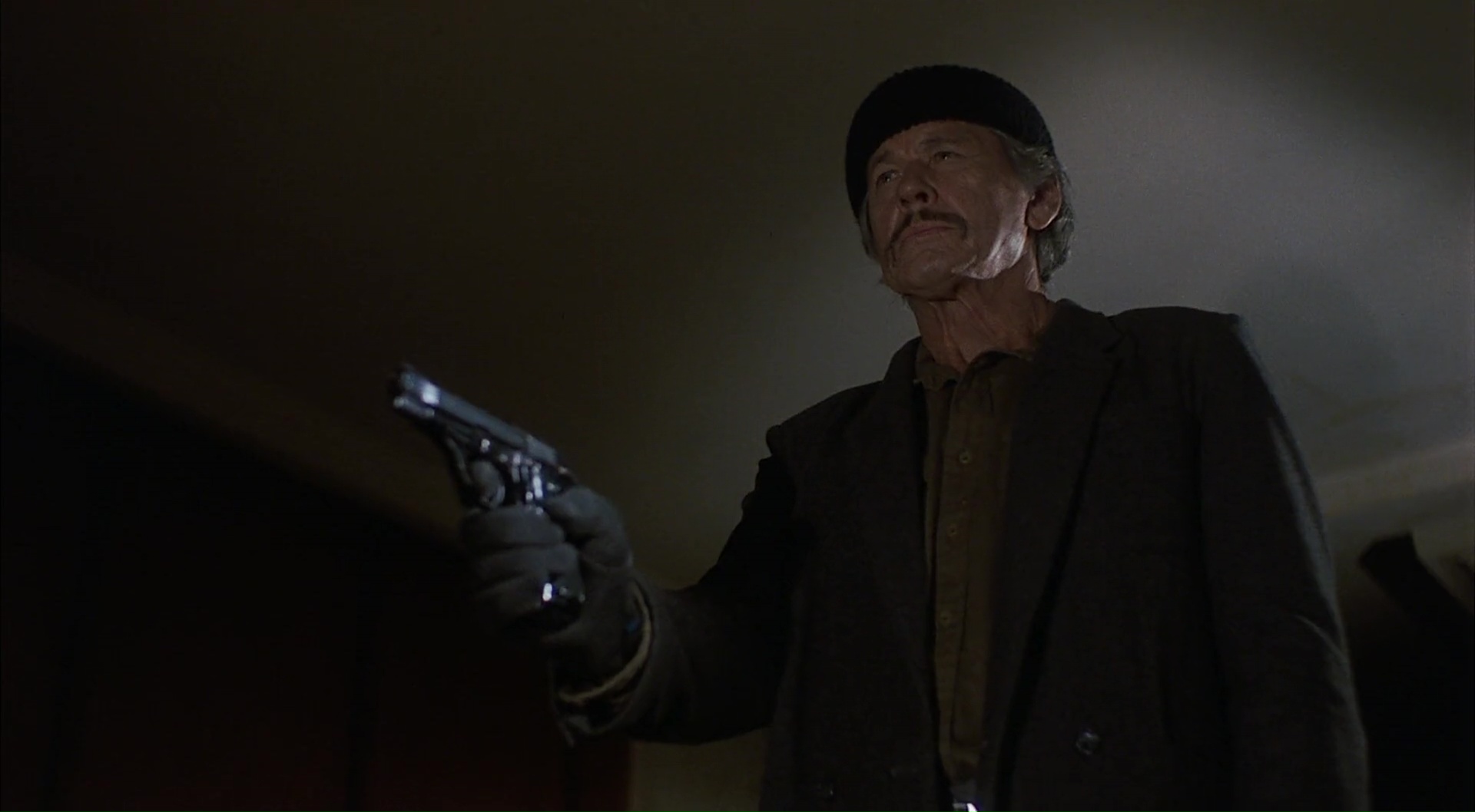 Notons d’ailleurs dans la bande de violeurs la présence d’un alors tout jeune et débutant Laurence Fishburne. Et Charles Bronson n’aura pas vraiment à se prendre la tête pour se venger, puisqu’il lui suffira parfois de marcher quelque peu dans la rue pour tomber sur les membres du gang, un par an, sans vraiment chercher. Les violeurs par contre semblent avoir tous été victimes de trous de mémoires, puisque certains ne le reconnaitront même pas. Seule l’efficacité compte dans le métrage, et semble intéresser Michael Winner, qui laisse alors la crédibilité mais également la narration de côté. En résulte des moments moins convaincants de jour, et immédiatement plus percutants de nuit, lorsque Bronson prend les armes. Là où le premier film tentait, parfois maladroitement, mais tout de même de mettre un message, et surtout avait la bonne idée que notre justicier ne retrouvait pas les coupables, et donc, ne pouvait pas accomplir sa vengeance, devenant alors véritablement un Justicier, arpentant les rues et vidant ses cartouches sur les pauvres âmes égarées qui avaient le malheur de commettre des crimes devant lui. Ici, malgré quelques dommages collatéraux, Bronson trouve les coupables, avec facilité, et les fais payer cher. Sans scrupules, sans hésiter. Comme une machine de guerre que rien n’arrête, et qui n’a plus de morale, ni de conscience. Et dont les quelques témoins cautionnent les actes. Pas étonnant pour le coup que l’auteur du roman original déteste les suites, qui oublient toute la substance du roman de base. Il faudra attendre que James Wan réalise Death Sentence, adaptant un autre roman de l’auteur, pour revoir une vengeance amère et qui a quelque chose à dire. Death Wish II, c’est du pur cinéma d’exploitation, toujours plus gros, bruyant et vulgaire. Et qui du coup, finit par amuser et divertir par son aspect primitif et rentre dedans. Pas franchement bon, mais distrayant dans sa proposition de cinéma.