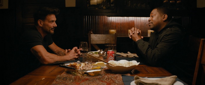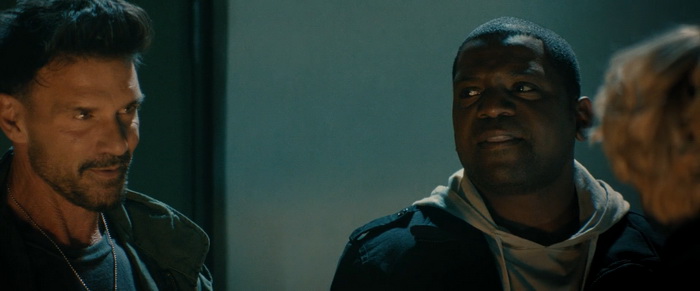 Est-ce qu’on peut se consoler malgré tout avec l’action ? Eh bien pas complètement. Déjà, Underground Fights souffre du syndrome Taken 3, certes en bien moins épileptique, mais une partie des scènes d’action sont montées à la hache, avec des cuts beaucoup trop nombreux, mais aussi une caméra qui bouge dans tous les sens. Il est difficile d’apprécier un tant soit peu les combats, et c’est d’autant plus frustrant lorsque, comme ici, ils sont censés être le cœur du film. Et puis quel dommage, alors qu’il y a au casting l’un des plus grands artistes martiaux occidentaux, à savoir Scott Adkins, qu’il soit sous exploité, avec un rôle qui tient plus du gros cameo. Lorsqu’il apparait enfin réellement, et que lors du climax, le film aurait pu laisser exploser toute sa furie, on reste sur notre faim, avec un final trop bref et manquant clairement d’envergure. Alors oui, il est toujours aussi charismatique, il a toujours autant la classe quand il se bat, mais il aurait clairement dû bénéficier d’un rôle plus important Et puis pourquoi reprendre le coup des rayons X façon Mortal Kombat lors de certains coups puissants ? C’est devenu sincèrement ringard tant cela a été aujourd’hui utilisé. Alors on se consolera comme on peut, avec par exemple la brutalité de certains combats qui, bien que mal mis en scène, ont un certain punch. On notera également une alchimie certaine entre les deux protagonistes principaux incarnés par Frank Grillo et Mekhi Phifer, ou encore une photographie pas trop dégueulasse. Les quelques flashback nous expliquant les traumatismes de guerre du personnage principal s’en sortent également. Mais Underground Fights s’enlise à cause de son scénario qui d’une prémisse de départ simple finit par s’enliser dans ses intrigues secondaires et ses nombreux personnages qui, en plus d’alambiquer le film pour pas grand-chose, le rendent encore plus plat. Parfois, il faut savoir épurer son scénario pour lui donner plus de chance.