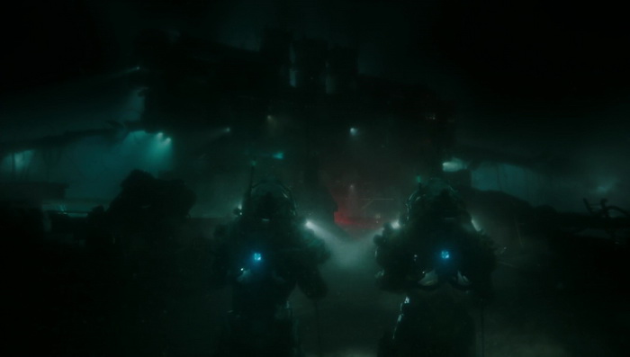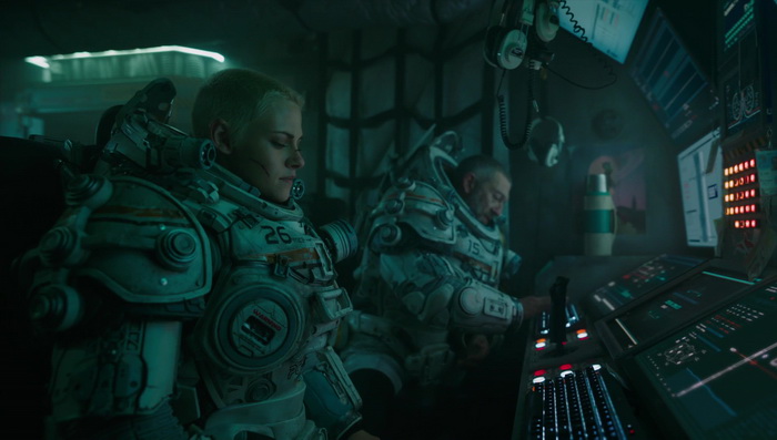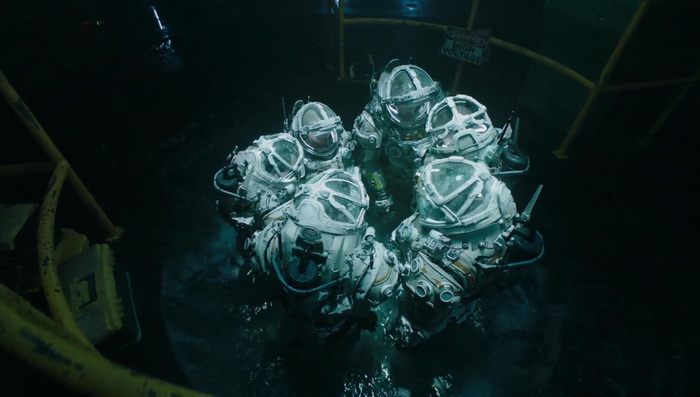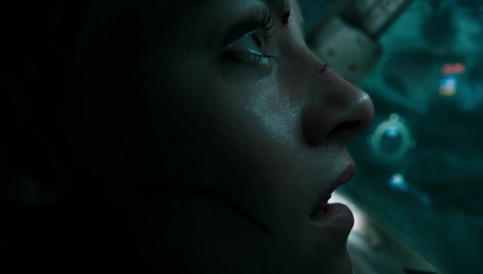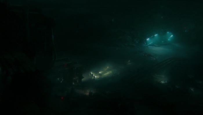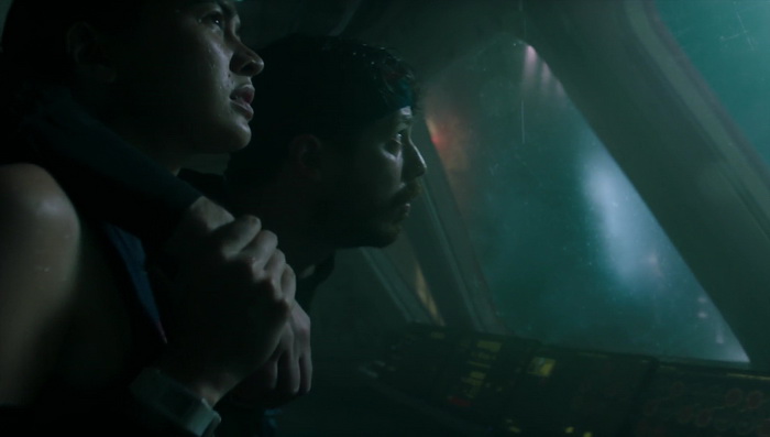 Ah ça, niveau efficacité, Underwater fait fort, retirant ainsi souvent une des faiblesses du genre, à savoir une longue exposition de personnages clichés. Le souci, c’est que du coup, on apprend à connaître les personnages sur le tas, ou parfois même après coup (traduction, après leur mort), ce qui empêche toute identification, surtout que malheureusement, niveau scénario, les personnages s’avèrent malgré tout bien clichés. Mais au moins, bien joué, puisque le casting est en soit plutôt solide. Kristen Stewart donc dans le premier rôle, dévoilée par Twilight avant de montrer ses talents dans des films plus sérieux (The Runaways, Café Society), mais le reste du casting n’a pas à rougir. On trouve en vrac Jessica Henwick (Game of Thrones), T.J. Miller (Deadpool, Cloverfield) ou encore Vincent Cassel (Mesrine, Black Swan, Irréversible) dans des rôles importants. Certes, les personnages ne sont pas à tomber par terre, mais avoir de bons acteurs aide toujours à faire passer la pilule. Mais bon, on ne regarde pas Underwater pour ces personnages, clairement, mais pour son environnement, ses monstres et son suspense. Et là, ma foi, ça fonctionne plutôt bien. Le suspense ne va pas vous faire stresser sur votre fauteuil, étant donné que le ton est donné cash pour ne pas faiblir, mais en terme d’efficacité, on n’a clairement pas le temps de s’ennuyer. Surtout que si ça commence immédiatement, le réalisateur sait aussi poser sa caméra lors de certaines situations, et ça il le gère plutôt très bien. Les excursions de nos personnages, dans leurs tenues, devant marcher dans les profondeurs pour tenter de survivre et rejoindre d’autres parties de la base fonctionnent à merveille, grâce à un bon boulot sur la photographie, et des plans assez claustrophiques qui arrivent à nous mettre à la place des personnages.