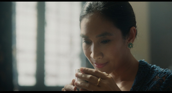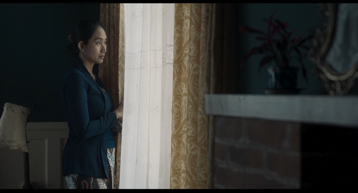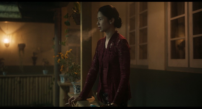 On se demande néanmoins si la place des femmes a finalement beaucoup évolué en Indonésie puisqu’un film tel que celui-ci, parlant des femmes, réalisé par une femme, n’a pas eu droit à une sortie cinéma, se contentant d’être diffusé sur Amazon Prime dans son propre pays là où il a par exemple eu droit aux salles obscures dans certains pays voisins comme la Corée du Sud. Et c’est dommage car Une Femme Indonésienne est visuellement à tomber. La composition des plans est juste superbe, avec régulièrement un jeu sur la symétrie (les plans avec des miroirs) et on a souvent l’impression d’être devant des tableaux de maître. En plus du scénario en lui-même, la narration est également ici très visuelle, de par la composition des plans donc, mais également le choix des couleurs, tantôt jaunâtres et ternes, tantôt plus colorées, comme pour rendre certaines scènes plus intrigantes. Le découpage et le montage sont dans cette même lignée, très travaillés, afin que la continuité dans ce que le film veut faire passer comme messages soit totale. Par sa musique quasi omniprésente, qui occupe clairement une place très importante, sa photographie proche de la perfection qui sait aussi bien mettre en valeur les décors que les personnages qui œuvrent à l’intérieur d’eux, Une Femme Indonésienne devient rapidement enivrant et onirique malgré la lenteur de l’ensemble, une lenteur voulue jusque dans le déplacement ou la façon de s’exprimer des acteurs, comme pour figer le propos à la fois sur la pellicule et dans l’esprit des spectateurs. Le film nous rappelle parfois le travail du thaïlandais Apichatpong Weerasethakul au début des années 2000, avec des films comme Tropical Malady ou Blissfully Yours, mais également celui de Wong Kar-Wai avec par exemple une scène renvoyant clairement à In The Mood for Love, que ce soit au niveau des couleurs, de la musique, de l’éclairage ou de l’ambiance. Ajoutez à tout cela un casting qui fait un sans-faute, avec des acteurs vraiment impliqués et une Happy Salma qui porte le film sur ses frêles épaules avec son interprétation réellement sincère, et vous obtenez un très beau film.