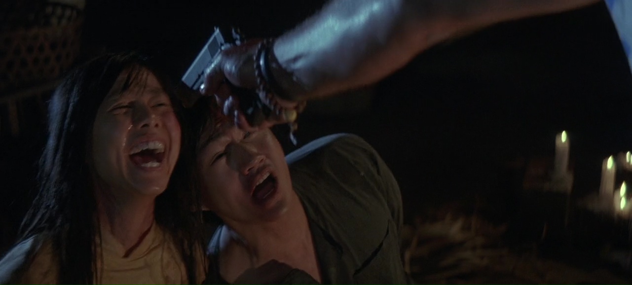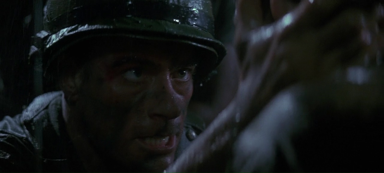 Bon, soyons clair dés le départ, comme tout film de Roland Emmerich, Universal Soldier n’est pas un grand film, mais a un fort potentiel sympathie, nostalgie ou non, de par sa générosité, sa violence par moment, son casting bien entendu, mais également par les débuts peu subtils mais encore plutôt humble de Roland Emmerich. Un film qui attire la sympathie même dans ses ratages, comme cette scène d’ouverture de nuit, sous la pluie, dans un village Vietnamien de studio avec cette fameuse végétation projecteur (il faut bien éclairer le plateau hein, après tout la scène fut tournée sur un terrain de golf si j’en crois la légende) où on est dans le ton immédiatement, avec un Van Damme et son accent Belge qui tente de jouer (contrairement à la suite de l’aventure, où il n’aura que deux expressions), et un Lundgren totalement habité et qui pète un câble en tuant tout le monde, même l’armée Américaine, et décide de se faire des colliers avec les oreilles de ses victimes. Un film subtil qui fait dans la dentelle. Forcément, face à un tel dérapage, ça tourne au vinaigre, et les deux hommes s’entre-tuent. Fin, voilà. Ah non, le film reprend de nos jours, enfin en 1992, 19 ans après les événements de la scène d’ouverture. Le gouvernement a lancé, bien entendu illégalement, un projet top secret où ils se servent d’une technologie pour ramener à la vie des soldats décédés à la guerre et les contrôler afin d’accomplir des missions dangereuses. Obéissant, ne ressentant pas la douleur, et surtout pouvant se régénérer à condition qu’ils refroidissent souvent leur corps, voilà donc les fameux Universal Soldier, et forcément, nos deux soldats sont dans le programme. Forcément, ça tourne mal, car que serait un projet top secret et pas très moral Américain si ça fonctionnait parfaitement ? La psychologie et les derniers instants de leur vie reviennent hanter nos deux soldats, et Jean-Claude prend la fuite en sauvant une journaliste en mauvaise position, et on lance les autres soldats, dont le fameux Dolph qui a un compte à régler, à leur poursuite.