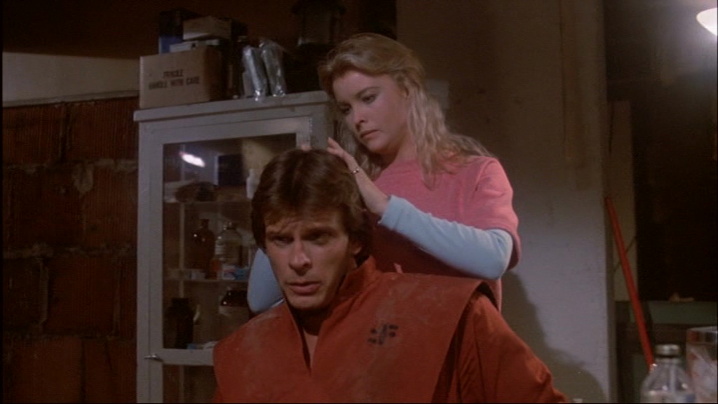 Pendant près de trois heures, le rythme restera soutenu, et le récit restera passionnant et structuré de manière intelligente. A aucun moment l’ennui ne viendra guetter. Les personnages sont tous intéressants, soit touchants comme Juliet Parish devenant du jour au lendemain une meneuse, soutenue par le reste du groupe, Donovan à la recherche de son fils, ou même Willie, le gentil visiteur un peu niais joué par Robert Englund avant qu’il ne devienne le tueur de Elm Street dans la saga des Freddy ou Robin, jeune adolescente tombant amoureuse d’un visiteur (rôle qui devait être au départ tenu par Dominique Dunne, actrice vue dans Poltergeist, malheureusement décédée peu après le début du tournage…), soit détestables au possible. Quand on pense à V, on pense à l’héroïsme de la résistance, mais également à leur ennemi, et donc, bien entendu, à Diana, encore peu présente dans la première mini série (mais prenant du grade dans la seconde et encore plus dans la série télévisée), mais marquant les esprits par la froideur de son personnage et par sa simple présence à l’écran. Oui je sais, je l’ai déjà dit, mais que voulez-vous, il y a des personnages qui marquent les esprits. Bien entendu, V n’est pas parfait pour autant, et ces effets spéciaux, notamment lors des scènes de poursuite en vaisseaux, accusent le poids des années, même si cela donne un certain charme à l’oeuvre. Mais en ce qui concerne le reste, à savoir les décors intérieurs, les effets de maquillages, le look des visiteurs, et même certains arrières plans, et bien ça a toujours de la gueule. Et moi, je regarde toujours V après tant d’années avec le même plaisir. Sauf la série car là c’est plus possible vraiment…