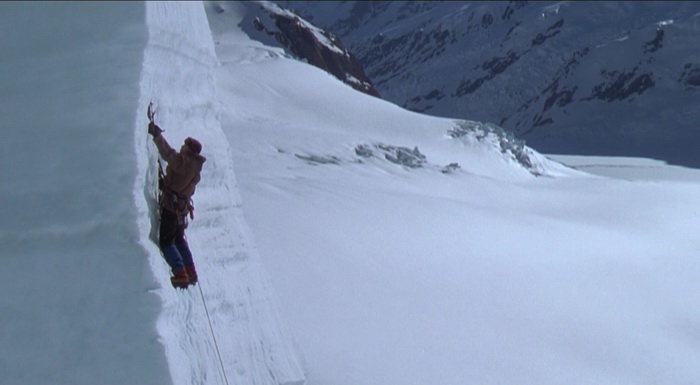 J’aime bien Martin Campbell. J’avais dis beaucoup de bien de lui lorsque j’avais vu son dernier métrage en date, The Foreigner, où il retrouvait Pierce Brosnan et le mettait face à Jackie Chan, pour un polar plutôt sombre sur la vengeance et le terrorisme. Campbell, on lui doit également deux excellents James Bond, à savoir Goldeneye et Casino Royale. On lui doit aussi Edge of Darkness avec Mel Gibson et Le Masque de Zorro avec Antonio Banderas. Mais on lui doit aussi Green Lantern. Personne n’est parfait. Si en parlant de lui, on cite souvent ses réussites et ses ratages, on parle rarement de Vertical Limit, qu’il fit en 2000. Tourné majoritairement en Nouvelle Zélande, son pays natal, Vertical Limit a en effet tout du film oubliable, ni franchement bon, ni franchement mauvais, juste sympathique pour une petite vision pas prise de tête. Mais comparé à énormément de métrages récents qui aurait voulu se lancer dans le même sujet (bon, il y a bien eu Everest), Vertical Limit date de 2000, et n’a donc que très peu recours aux effets numériques, et nous offre donc des cascades effectuées pour de vrai, et la plupart du temps, par les acteurs eux-mêmes. Et là du coup, en terme de spectacle, ça a immédiatement un peu plus de capital sympathie. Au départ prévu comme une suite à Cliffhanger de Renny Harlin réalisé en 1993 (qui a eu des projets de suite dés 1994, puis de remake dés 2009, avant finalement l’annonce d’un reboot… féminin en 2019), il faut dire que le pari est osé, car si Cliffhanger n’est pas un grand film, il reste un actionner plutôt compétent de la part du réalisateur, avec un Stallone investi, et surtout, encore aujourd’hui contenant la cascade aérienne la plus couteuse de l’histoire du cinéma (un passage entre deux avions à une altitude de 4 600 mètres, qui a juste coûté 1 million et a du se faire sans assurances). Mais finalement non, Vertical Limit n’a rien à voir. Mais dés sa scène d’ouverture, il annonce le ton, car sa scène d’ouverture, elle est excellente, et quasiment jamais le film ne retrouvera ce niveau.
