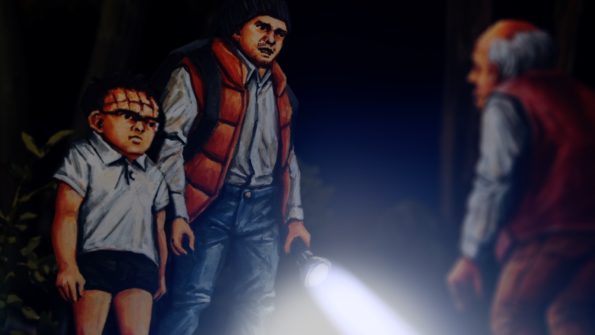 Violence Voyager, c’est un parc d’attraction perdu dans la montagne que découvrent Bobby et Akkun lors d’une randonnée. Sur place, le directeur du parc, Koike, assisté de sa fille Saori, leur proposent une sorte de jeux vidéo grandeur nature. Le but : repousser une invasion extra-terrestre dans une forme toute simple : des aliens en cartons que l’on asperge au pistolet à eau. Mais au cours de leur partie, ils découvrent qu’ils ne sont pas seuls à jouer, et qu’un alien semble bel et bien réel. Ce court résumé n’est que le point de départ de Violence Voyager, qui prend une toute autre direction par la suite et raconte le passage de l’enfance à l’adolescence, de la disparition des peurs enfantines qui laissent place au courage, la perte des copains d’enfance ou encore la puberté, plusieurs aspects sont abordés… à la manière Ujicha. Il nous livre ici un pur film d’horreur, et en plus de reprendre le coté body horror déjà présent dans the Burning Buddha Man, Violence Voyager est à mi-chemin entre le conte macabre et une production Amblin qui se serait complètement lâchée.