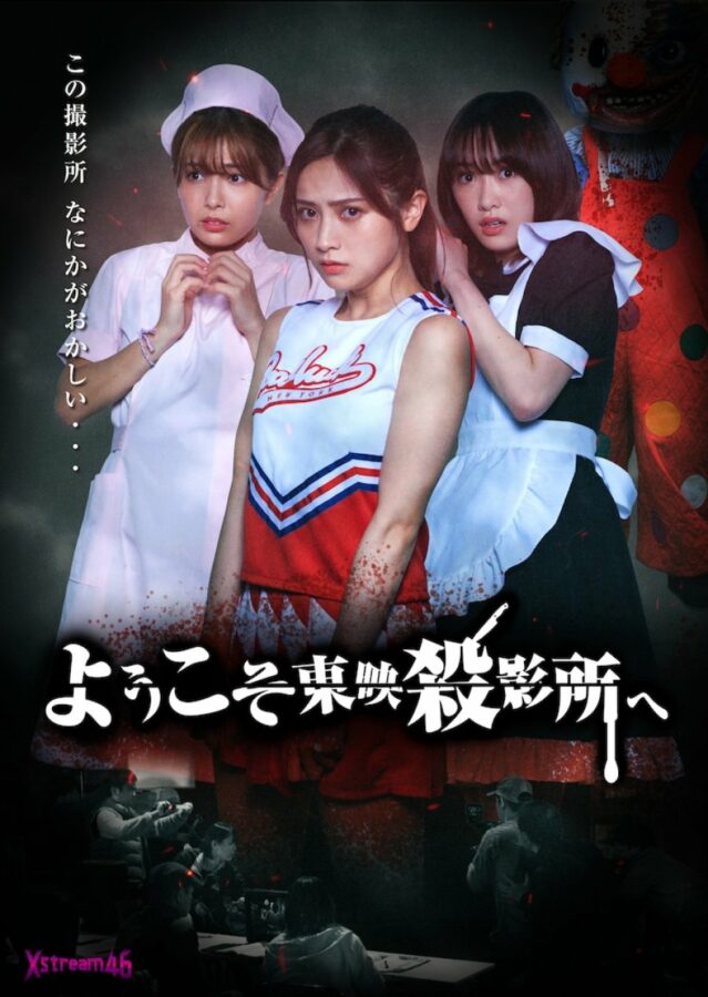 Les films s’amusant du concept de film dans le film, du tournage qui fait parti de l’intrigue même du récit, ce n’est pas nouveau. Que ce soit pour tourner tout ça en dérision et livrer une solide comédie d’action avec Tonnerre sous les Tropiques, que ce soit dans le genre horrifique de manière plus ou moins sérieuse (Scream 3) ou moins (Smash Cut), le concept n’est pas nouveau. Même David Lynch aura utilisé le concept pour brouiller de manière totale les frontières dans son Inland Empire en 2006. Et bien cette fois-ci, c’est le Japon et le studio Toei qui s’y colle. Oui rien que ça, le studio est derrière ce projet qui met le studio lui-même en abime, puisque l’on se retrouve au sein même des studios, où des métrages sont tournés dans ces grands entrepôts, où techniciens, acteurs et exécutifs se croisent à longueur de journée. Welcome to Toei Slaughterhouse de son titre international, bien qu’aucune sortie hors du Japon ne soit prévue, est un moyen métrage de 46 minutes à destination du web Japonais, et mettant en avant trois idoles, dans la vraie vie et dans le film, qui sont sélectionnées pour apparaître dans la suite d’un des gros succès du studio, Yugami. Excitées, surtout que l’arrivée sur place leur vend du rêve, à coup de réalisateur criant dans son mégaphone, de techniciens nombreux et courant dans tous les sens, de stars et d’exécutifs autour d’elles, sans oublier les nombreux costumes qui les attendent dans les loges, ainsi que des magnifiques bento, la réalité, ou plutôt, l’horrible vérité va vite les rattraper, quand elles vont se rendre compte que les nombreux effets sanglants des productions Toei ne sont peut-être pas des effets spéciaux, et que leurs heures sont comptées.