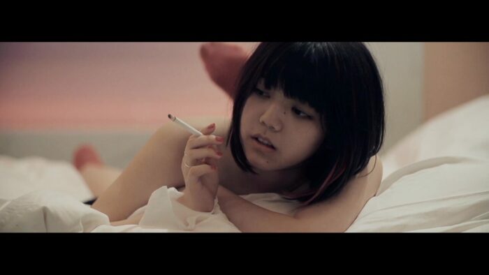 Surtout qu’en prime, When You Wish Upon a Star, le métrage de Sasaki qui débarque donc, est sans doute son métrage le plus « éloigné » du reste de sa filmographie. Non pas que ça ne va pas va saigner, et que l’on n’aura pas un ou deux petits démembrements, mais le film a une ambiance bien plus haute que le reste de sa filmographie, souvent de simples petits films de genre. Ici, nous sommes face à un mélange entre le pur film d’horreur d’un côté, et le drame assez dark de l’autre, alors que l’on plonge dans le quotidien d’Eve, une jeune prostituée qui chute dans la drogue, la violence et le sexe, notamment après quelques rencontres. Alors oui, du coup, le métrage de Sasaki se fait plus ambitieux, et conserve sa patte, relativement propre et maitrisée visuellement. Imparfaite oui, mais qui convient la plupart du temps aux histoires qu’il veut nous raconter, et comme le métrage en question mise beaucoup plus sur son scénario qu’à l’accoutumée, c’est donc parfait. Cette ambition se remarque aussi dans la durée du métrage, là où le reste de sa filmographie se concentre sur des films courts, entre 1h et 1h20, When You Wish Upon a Star dure quasiment deux heures, 1h57 pour être précis, rien que ça. Mais avant de parler de ce qui fâche donc, parlons de ce qui fait plaisir. Le connaisseur déjà va reconnaître certains acteurs et actrices avec qui le réalisateur avait déjà pu travailler auparavant. Kaneda Ibuki dans le rôle-titre est d’ailleurs souvent très juste dans un rôle qui demande beaucoup, et surtout, qui demande de lâcher prise. Le mélange de genres et même d’influences au sein du métrage est également parfois rafraichissant, puisque l’on peut passer d’une scène dramatique voire mélodramatique à une scène beaucoup plus dure, à une pure scène gore, avant de partir dans du surréalisme (avec l’amie tuée mais qui revient toujours, et qu’il faut donc tuer de nouveau), voire dans le fantastique (il y a un loup-garou dans le métrage), avant de repartir sur quelque chose de plus doux.