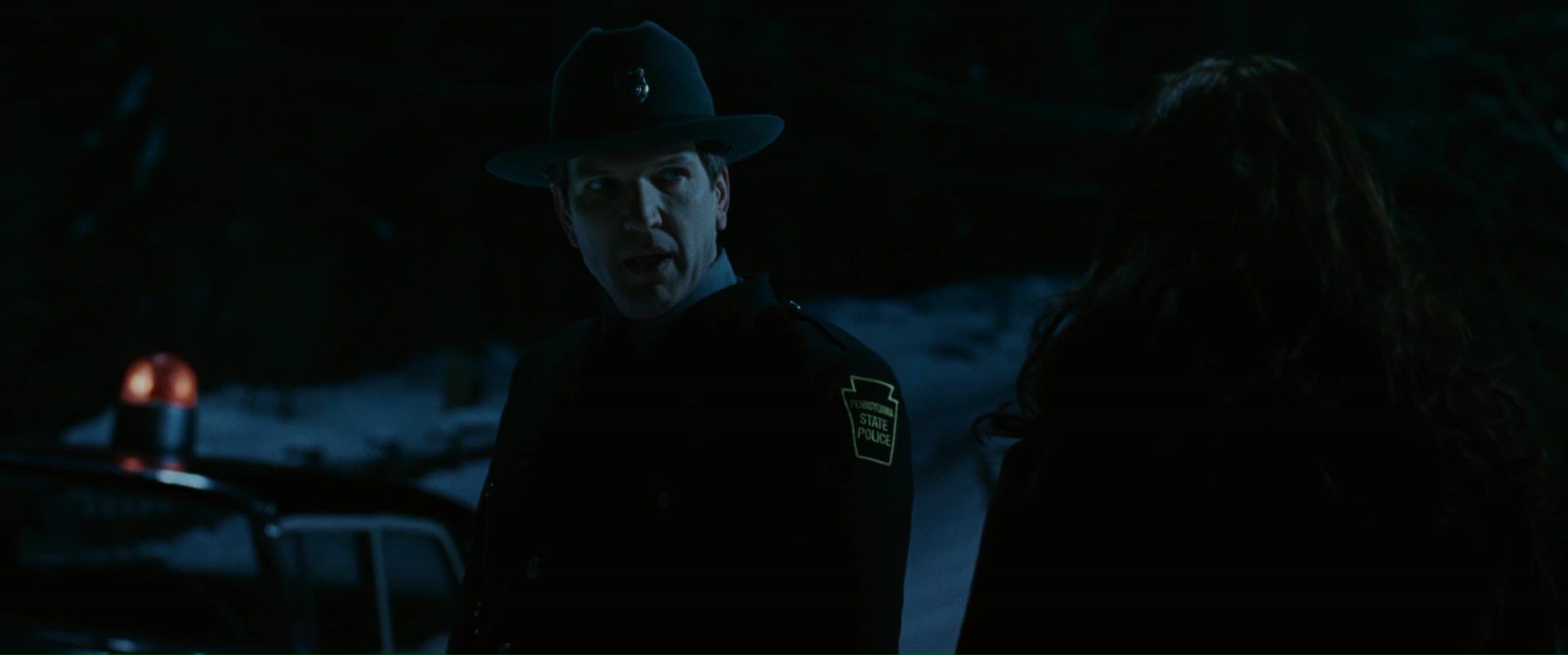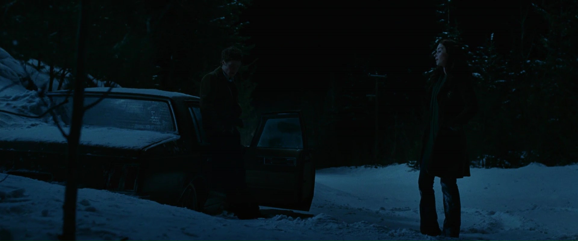 Non pas qu’il soit mal joué, mal filmé ou quoi que ce soit, mais dans un premier temps, il faut poser le décor du film, et les personnages ne sont pas sa plus grande réussite. Ashton Holmes ne joue qu’un ado qui semble cacher beaucoup de choses et qui semble faire une fixation sur le personnage de Emily Blunt, qui elle joue plutôt le rôle de la garce, se braquant pour un oui ou pour un non, étant même par moment désagréable. Oui, ça commence mal niveau attachement des personnages. En réalité, il faut attendre que le décor soit bien posé et que nos deux personnages soient victimes sur une route isolée d’un accident qui les bloque pour la nuit pour que le film prenne son envol. Et c’est à partir de ce moment que ce film m’a convaincu, quand il n’essaye plus de jouer sur la profondeur de son récit ou de ses personnages, mais uniquement de poser son ambiance et de la faire fonctionner. Car elle fonctionne. Grâce à une mise en scène fluide, lente et appliquée, une ambiance sonore réussie et jamais envahissante, une absence quasi intégrale de jumpscares. C’est lorsqu’il joue sur son ambiance que Wind Chill est à son meilleur. Le son du vent en arrière plan, les branches des arbres bougeant à la mélodie de ses sons, l’obscurité se cachant au-delà de la route, une ombre furtive en arrière plan qui passe, sans sursauts, sans accélérations, sans sons parasites. C’est clairement là que Wind Chill réussit son pari, celui de retranscrire une ambiance claustrophobe, lors d’une soirée d’hiver qui s’annonce rude.