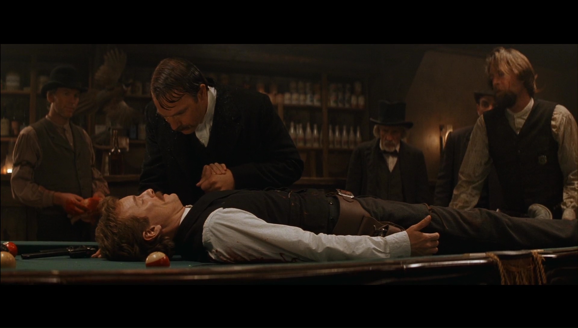 Tombstone était rythmé, allait à l’essentiel, donnait du temps de présence à son grand casting, et était un western classique, assez rentre-dedans mais très plaisant. À l’opposé, Wyatt Earp prend son temps, multiplie les sujets, se focalise avant tout sur Kevin Costner quitte à laisser pas mal de personnages en arrière plan, et à les faire disparaître pendant un temps, bénéficiant d’une mise en scène classe et réfléchie, mais souffrant en quelque sorte de ces ambitions. Trop long, trop d’éléments à traiter, une histoire qui se disperse parfois un peu trop. Car basiquement, ici, ça dure plus de trois heures, et ça commence par la tendre enfance de notre jeune homme, avant qu’il ne quitte la demeure familiale, se trouve divers boulots, soit marshall dans quelques villes, puis ne les quitte, avant d’arriver, assez tardivement, à Tombstone. L’on verra donc forcément ses rencontres avec Doc Holliday (Dennis Quaid, excellent et très différent de l’interprétation de Val Kilmer dans Tombstone), ses premiers pas avec les frères Masterson (Bill Pullman et Tom Sizemore), mais comme quasiment toute la vie de Wyatt Earp est condensée dans le film, tout va vite. Les personnages entrent dans le récit, puis parfois disparaissent un temps, reviennent, meurent, ou redisparaissent avec leur prochaine scène. Il faut d’ailleurs noter, comme pour Tombstone, que Wyatt Earp bénéficie d’un sacré casting. Outre les noms déjà cités, et bien entendu Kevin Costner dans le rôle titre, signalons la présence de Jeff Fahey, Michael Madsen ou encore Isabella Rossellini, rien que ça. Et malgré le récit qui s’étire parfois, alors qu’il survole beaucoup d’éléments, ironiquement, il faut bien avouer que Lawrence Kasdan livre souvent une mise en scène inspirée. Certains moments flattent la rétine, d’autres sont incroyablement fluides, le montage fait du bon boulot et tout s’enchaine plutôt bien malgré la multitude d’éléments à traiter dans le métrage.
