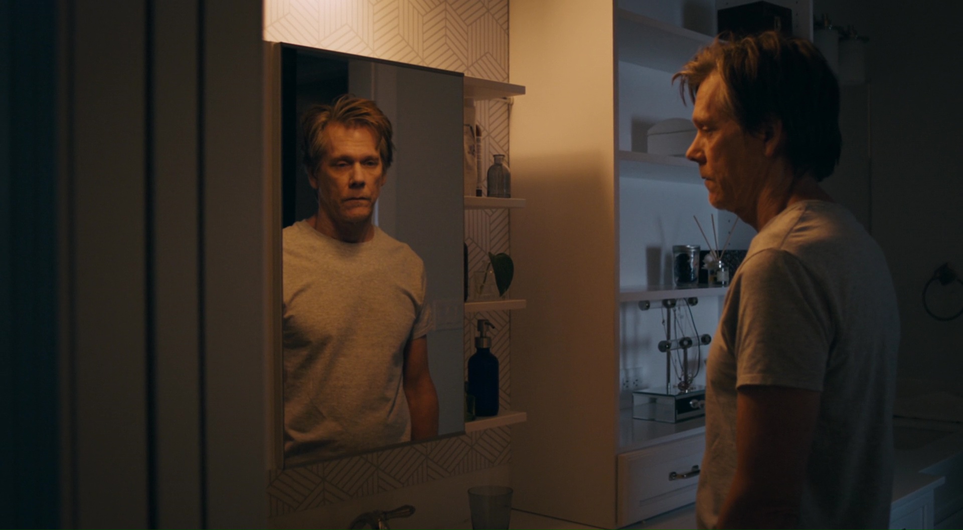 Alors attention, nous avons donc ici un couple qui se rend dans une maison bien isolée. Le couple, c’est d’un côté un ex banquier mal vu puisqu’accusé quelques années avant du meurtre de sa femme, joué par Kevin Bacon (le banquier hein, pas la femme). De l’autre côté, une actrice à la vie forcément un peu compliquée, puisque payée pour simuler (dans tous les sens du terme parfois vu les rôles qu’on lui donne), jouée par Amanda Seyfried. Et leur fille, adorable Avery Essex donc, plutôt convaincante à l’écran d’ailleurs, petite surprise du métrage niveau casting. Casting d’ailleurs plutôt solide, et réelle qualité du métrage. Le souci c’est qu’autour de ce casting gravite beaucoup de vide, beaucoup de longueurs alors que le métrage se fait court, 1h33 au compteur. On a clairement une première partie, assez lente, avec quelques cauchemars, des doutes au sein du couple, de la jalousie, une petite fille qui se pose des questions sur le passé de son père. Pas inintéressant niveau psychologie, mais finalement pas assez développé, et surtout bien trop timide. Koepp a du mal à tirer quelque chose de palpitant de son récit et de ses idées de base. Pour sa défense, il adapte un roman, qui est peut-être déjà trop timide et indécis à ce niveau. Le personnage de Kevin Bacon par exemple a beaucoup de potentiel, mais le scénario n’en fait quasi rien, préférant alors mettre pas mal de choses en arrière plan avant de les ramener maladroitement pour le final. Pour les autres personnages, ça coince moins, mais malheureusement car ils sont moins développés. Pendant une heure, ça se veut très calme, et c’est dommage, car on notera quelques bons moments, notamment en ce qui concerne l’architecture de la maison, et un jeu d’ombre assez poussé et intéressant durant les scènes de cauchemars.